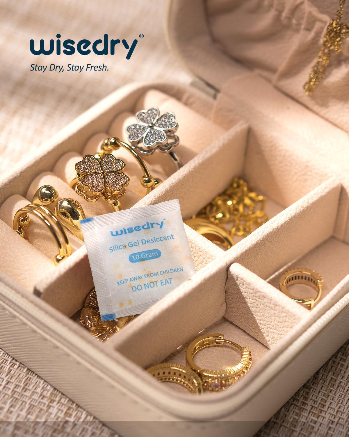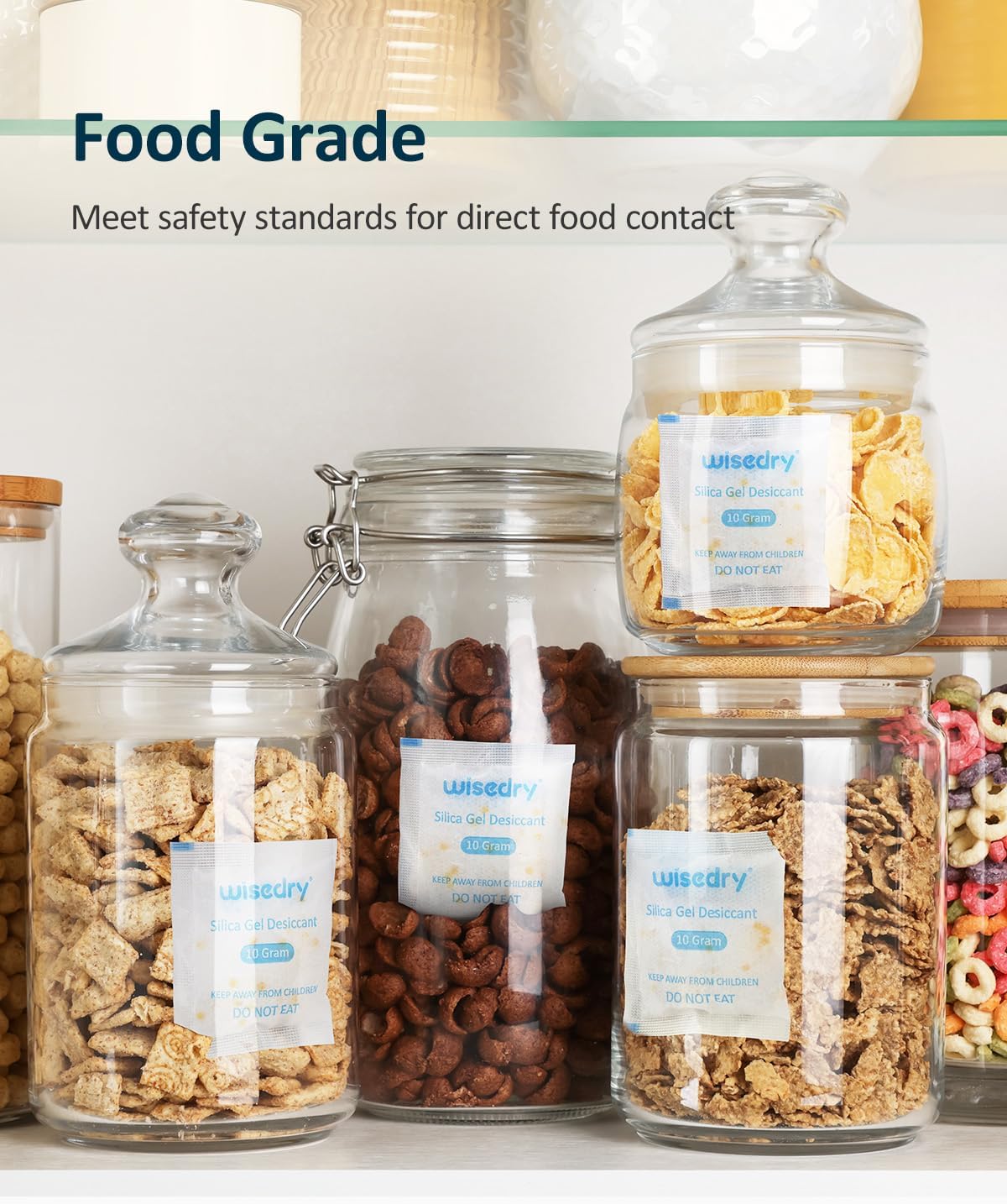 wisedry 10 Gram [30 Packs] Silica Gel Desiccant Packets Reusable for Moisture with Color Indicating Rechargeable Small Dessicant Packs Food Grade