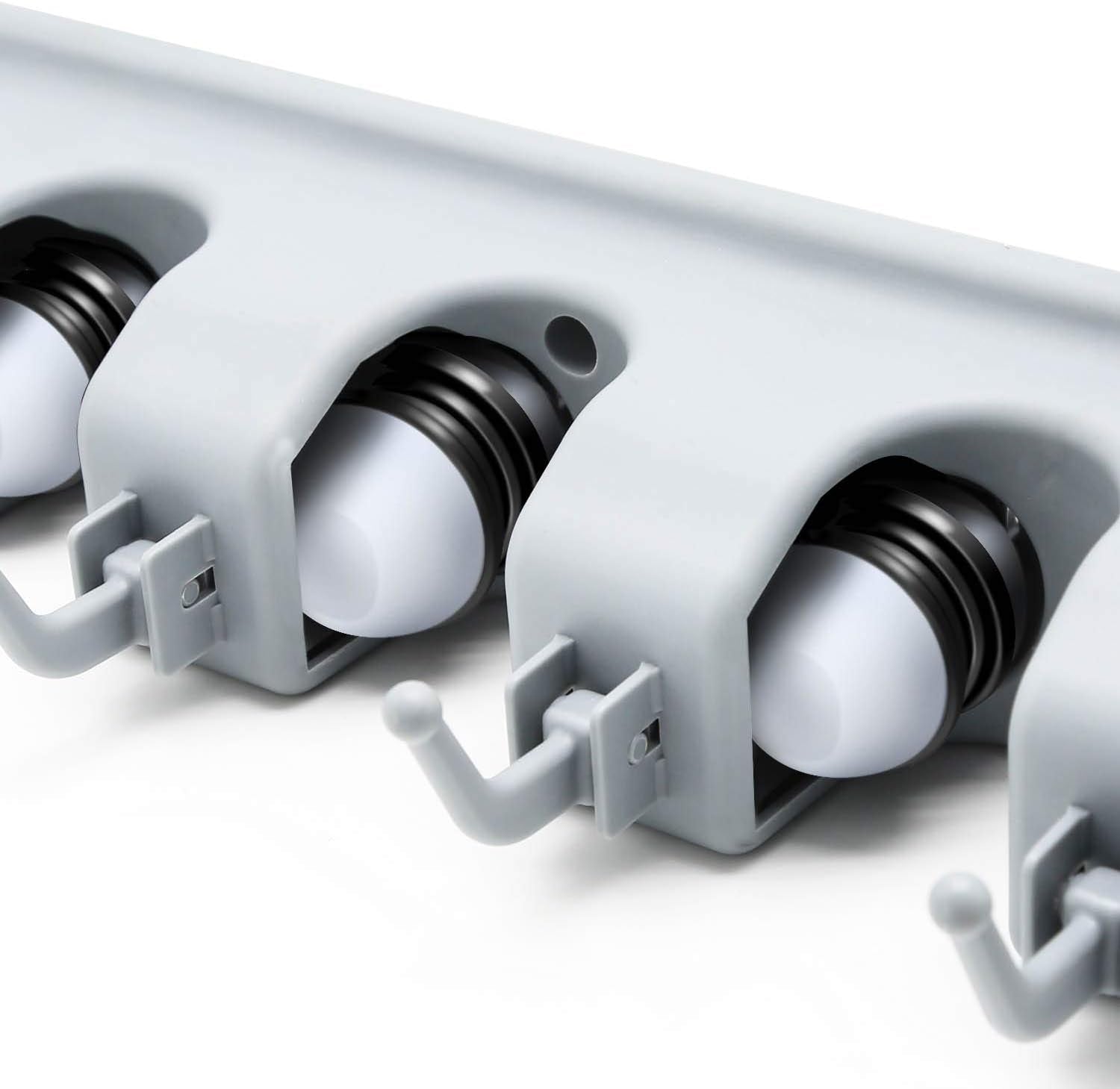 - None Slide Design Broom Holder - The broom holder wall mount is made of high quality ABS material. Thanks to the spring loaded, double rubber gripped slots, whether wet mops, dirty rakes or baseball bats, nothing slips from our mop and broom holder wall mount