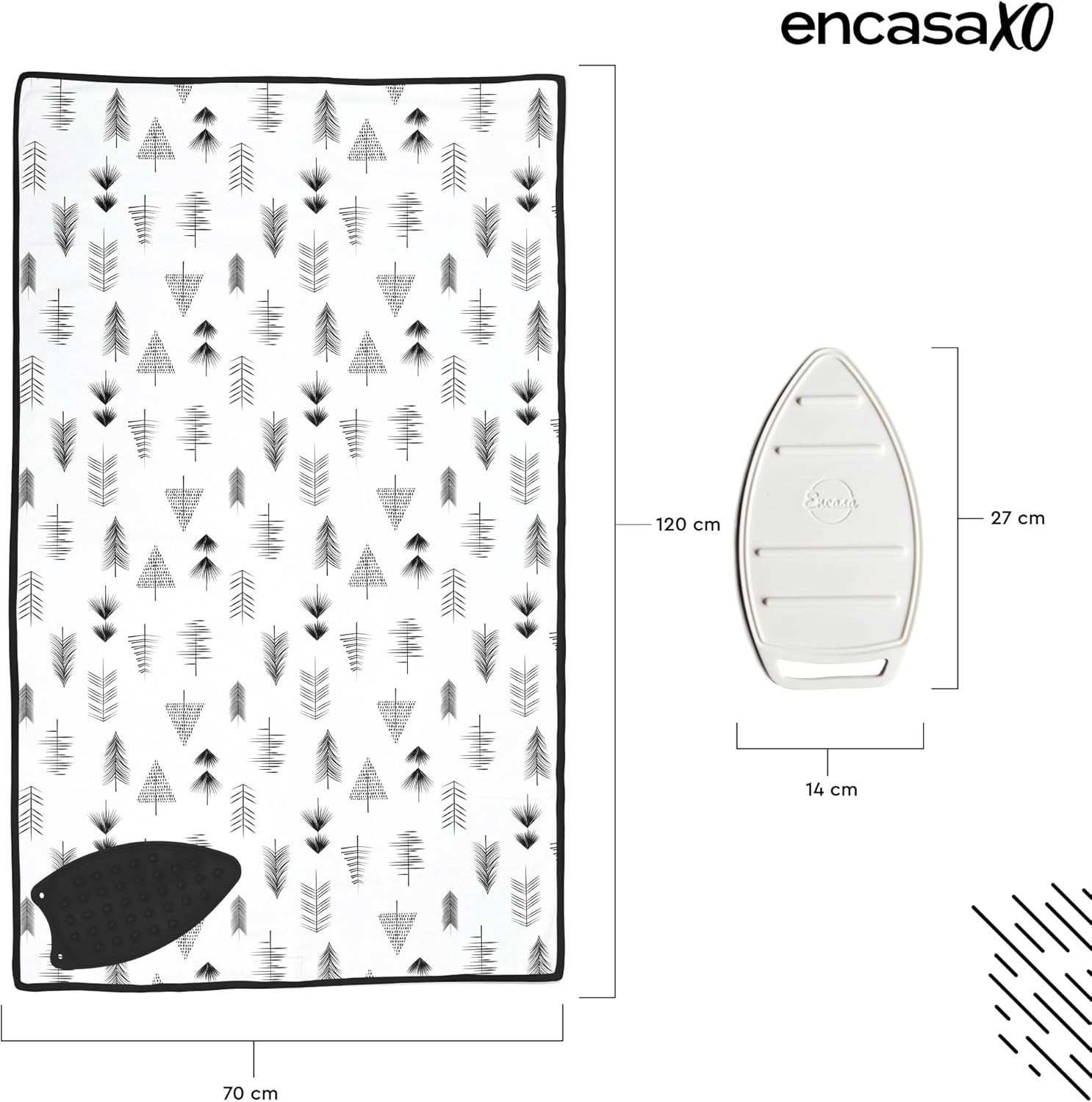 Encasa XO Ironing Mat/Pad (Large 48"x28") with 3mm Padding & Silicone Iron Rest for Steam Pressing on Tabletop or Bed - Heat Resistant, Portable, Quilting & Travel Blanket - Black Arrow