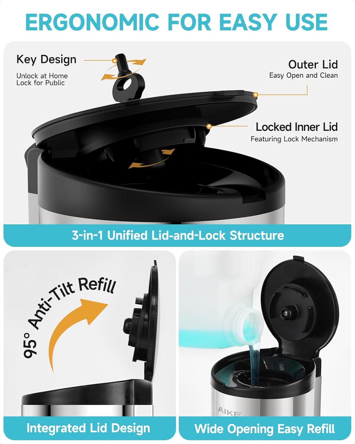- Hassle-Free: 25oz Large Capacity Stainless Steel for Commercial Use. Touchless for All Family Members at Home