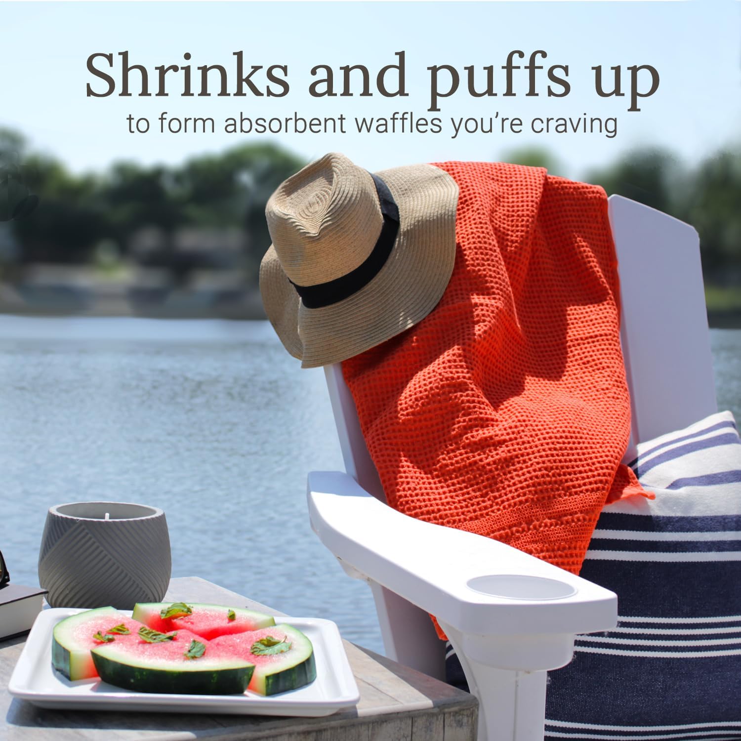 - Lightweight Waffle Bath Towels: Completely wraps around your body and stays tucked in. Naturally thin bath towels take up less space in your closet, laundry machine, beach towel bag, pool towels bag, suitcase, boat, camper, RV or yacht.