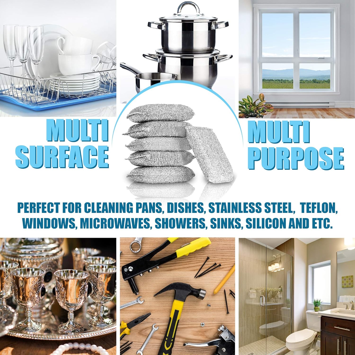 - DURABLE LONG LASTING MATERIALS: Unlike metal scrub sponges that rust easily, these polyester and polyurethane cleaner sponges will stain in excellent condition for up to 3 months (500 uses). Each set includes 6 scrubber pads in silver and gold, so you wonβt have to buy a new pack anytime soon!