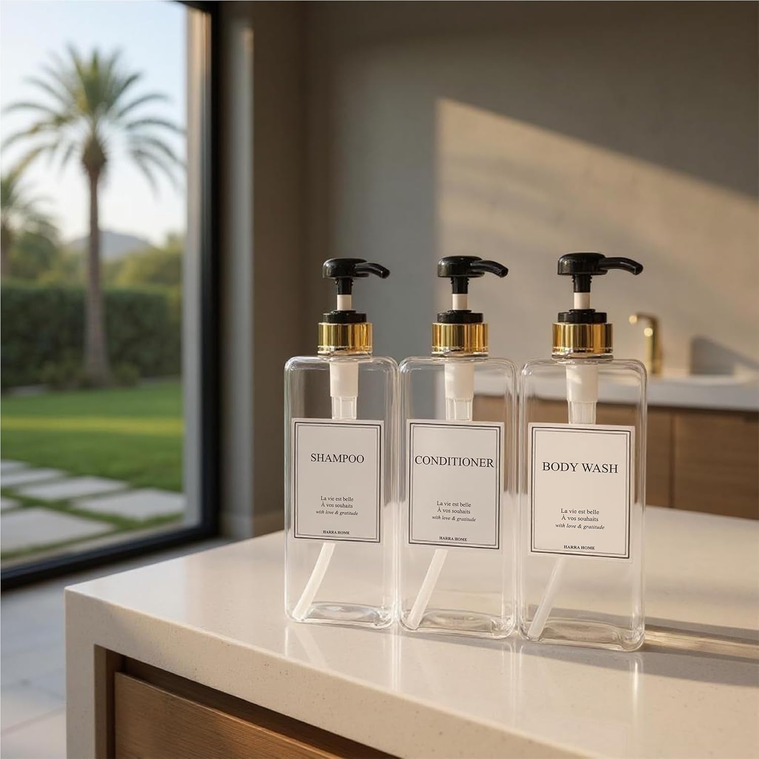 - ELEGANT & MODERN DESIGN — Elevate your bathroom decor with HARRA HOME bathroom accessories that create an instant hotel-style bathroom aesthetic. These decorative pump dispensers transform any shower and sink area into a modern bathroom sanctuary without breaking the budget. Perfect bathroom organizers that eliminate clutter from multiple bottles while adding elegance to your space.