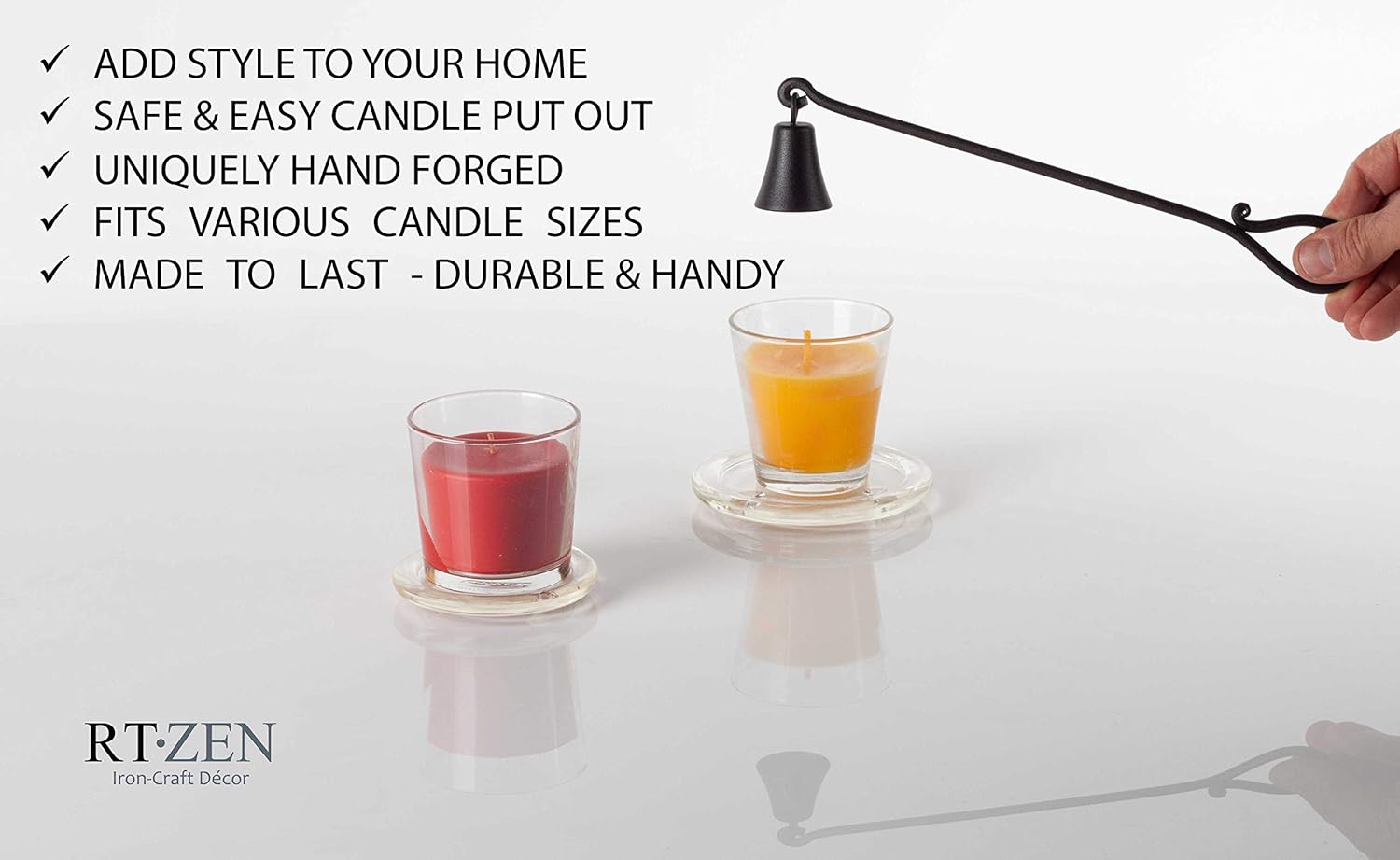 - DECORATIVE WROUGHT IRON CANDLE SNUFFERS - Candle Cap Rod with Easy Storage & Hanging. Place Under Table or Mount on Wall or Hook on Hanger. Hand Made Decoration Adds Style to Any Space