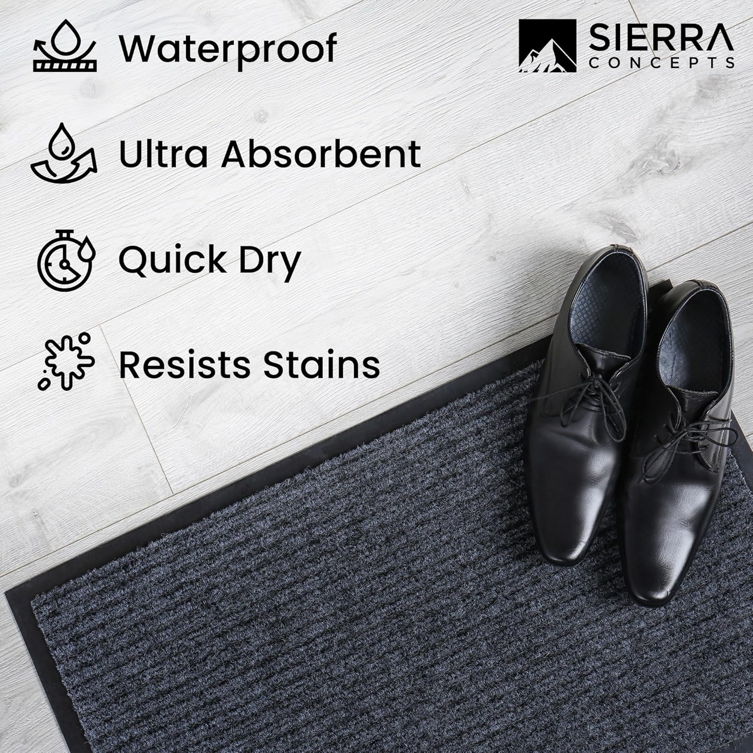 Sierra Concepts Front Door Mat Welcome Floor Mats - Entryway Indoor Outdoor Entrance Doormat, Patio, Porch, Muddy Shoe, Inside Outside Low Profile, 30x17 inches, 2-Pack Gray