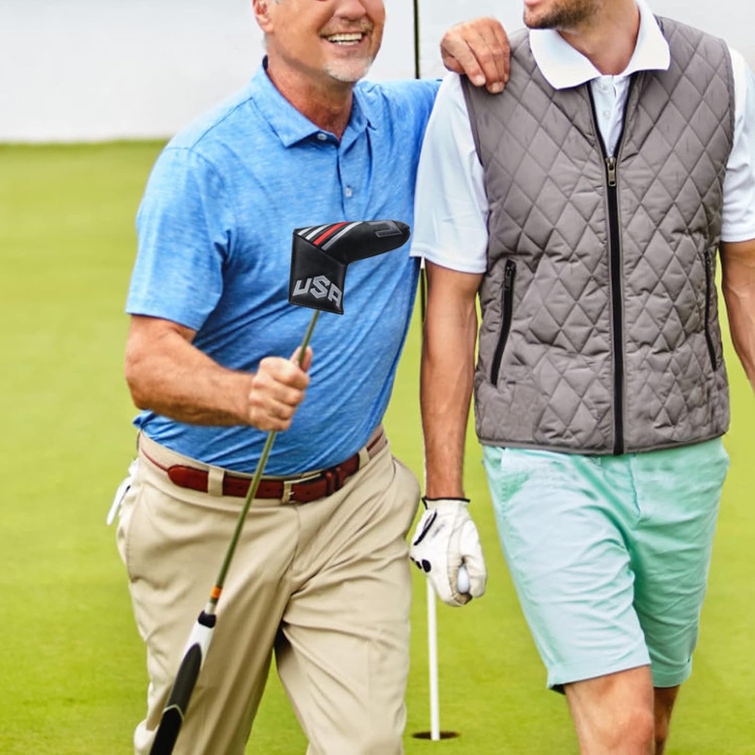 Big Teeth Golf Cover USA Stripe and Star Headcover Covers, Driver Fairway Wood Hybrid Headcovers Fits Blade Mallet Putter Iron and Woods with Magnetic Club Protector Pu Leather Golf Accessories
