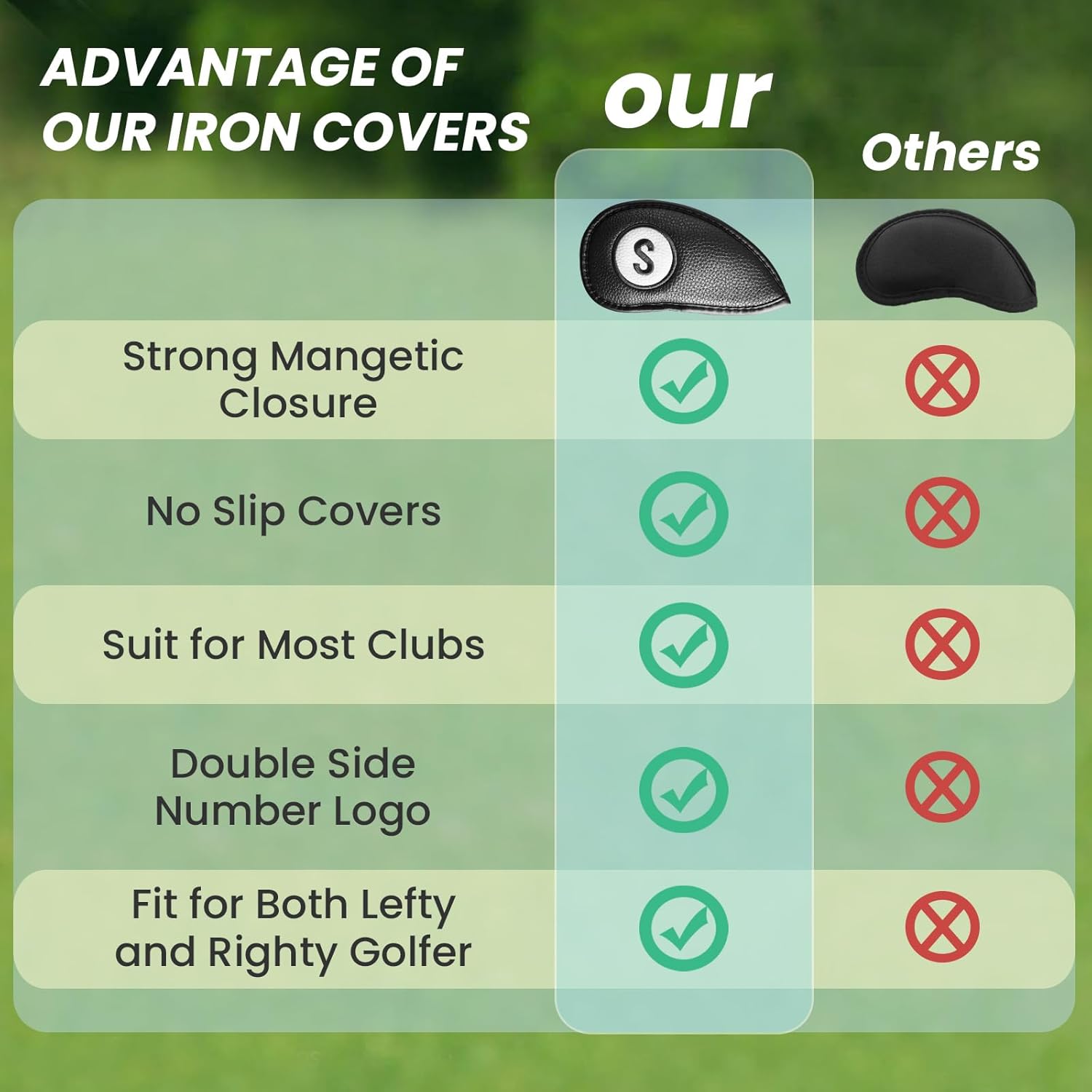 - Protect Your Clubs: By using these magnetic iron headcovers, you can prolong the life of your irons, preserving their appearance and performance for years to come.