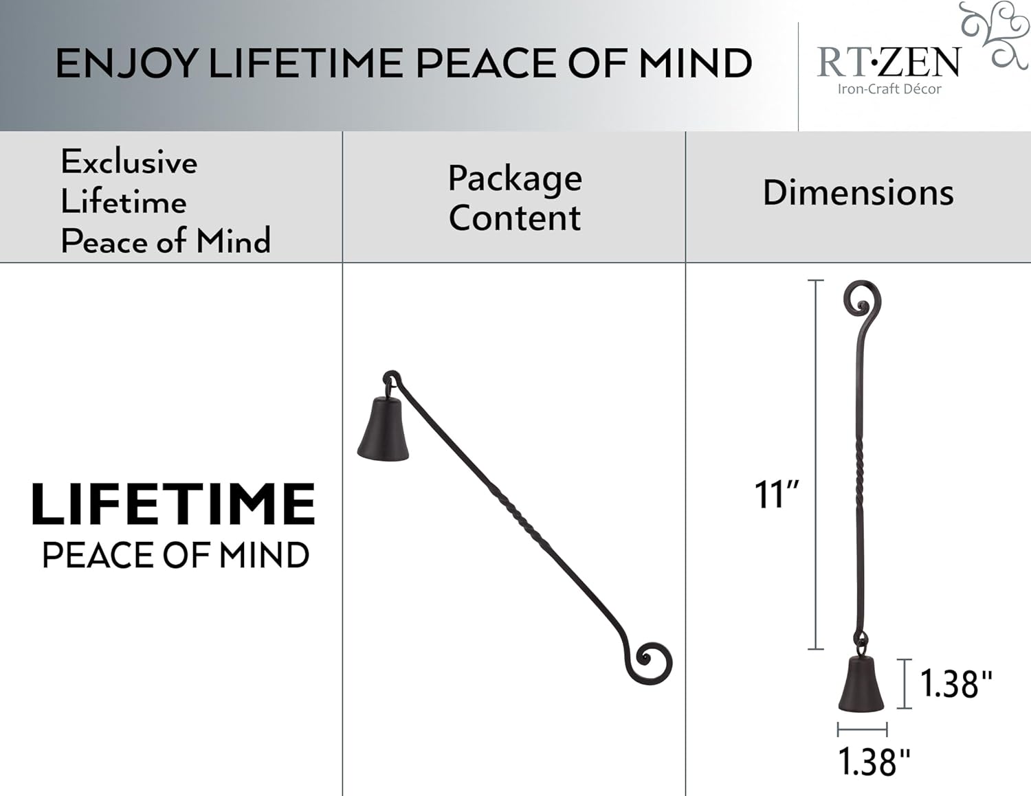 RTZEN Antique Bell Candle Snuffer - Handcrafted Decorative Rustic Wrought Iron Candle Extinguisher Candlesnuffer with Long Handle - Unique Black Matte Farmhouse Decor Accessories Gift