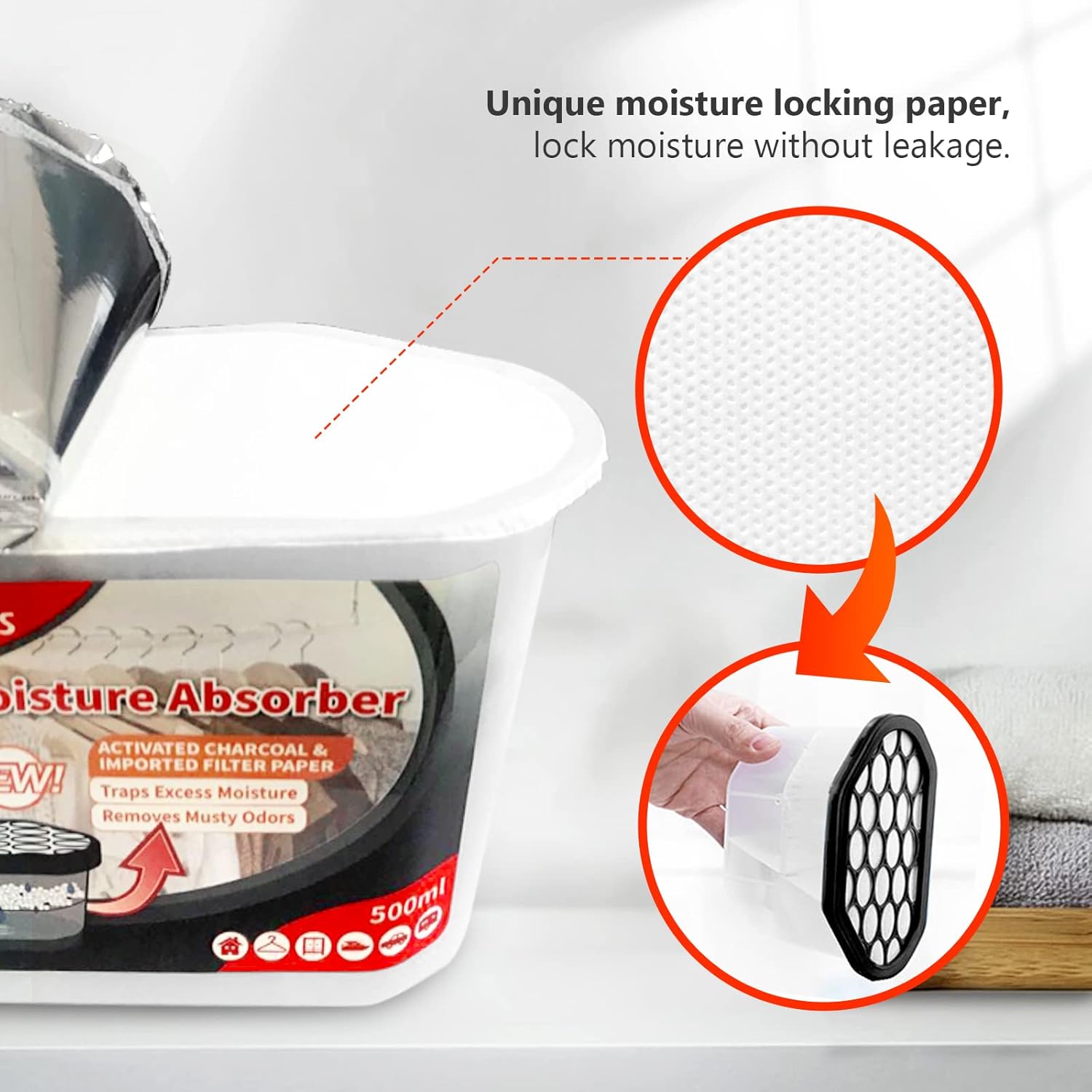 - Visible Effect : Vacplus closet dehumidifier has its own independent water-collecting layer. You can observe the water absorption from the humidifier absorber at any time.