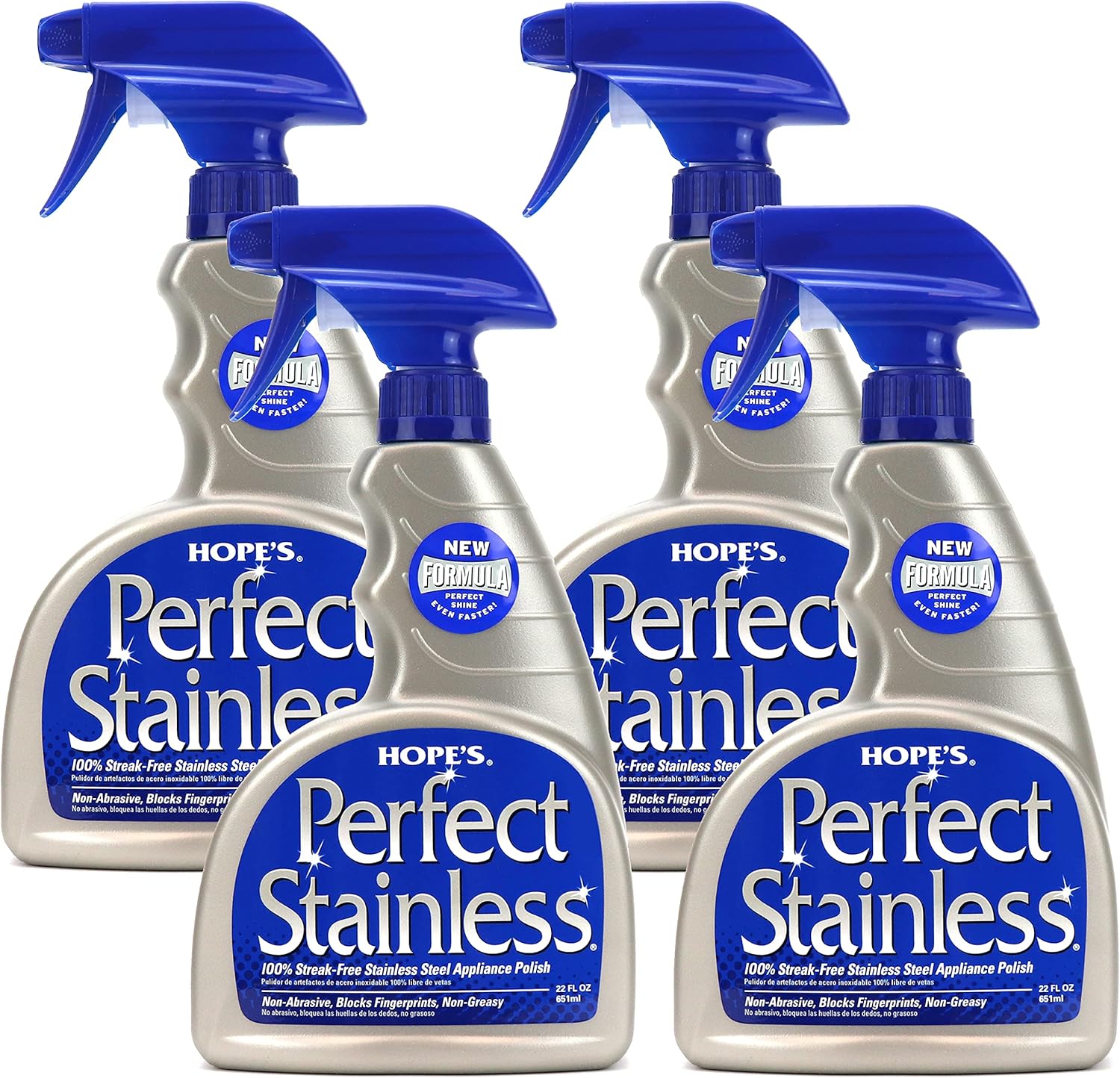 HOPE'S Perfect Stainless Steel Cleaner 22-Ounce, Streak-Free Self-Polishing Formula, Blocks Fingerprints, Pack of 4, 22 Ounce
