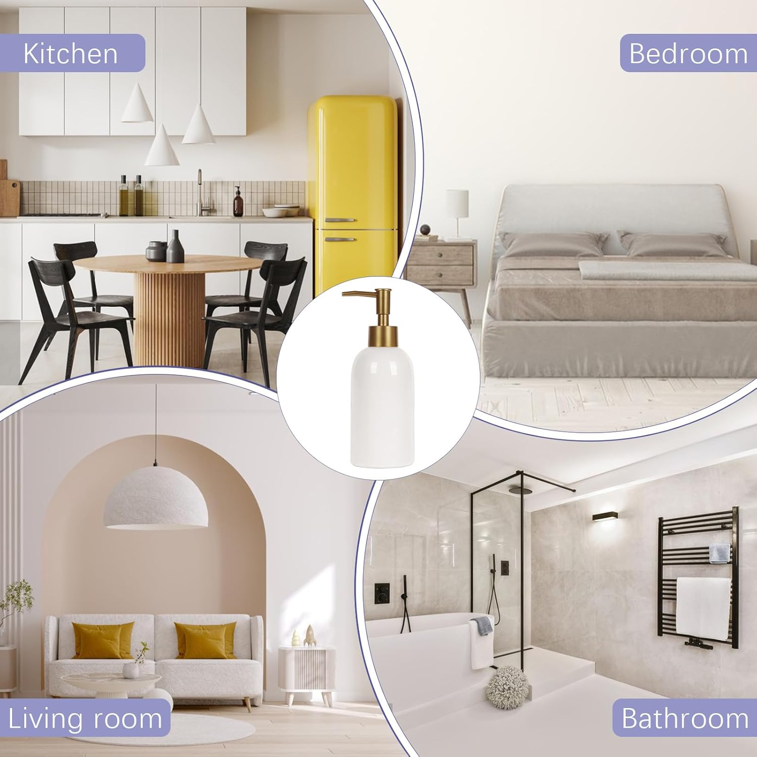 - Versatile Liquid Compatibility: This ceramic soap dispenser is designed for thicker liquids like lotion, hand sanitizer, shampoo, shower gel, and even laundry detergent. (Note: Avoid vigorous shaking during use to prevent spills.)