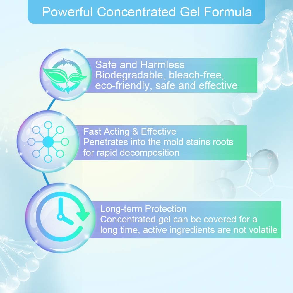 - ❤Safe For Virtually Any Surface: Bleach-free, biodegradable, non-acidic,eco-friendly, safe and effective, Low odor -the irritating odor of mold stain cleaner gel is less than the ordinary spray