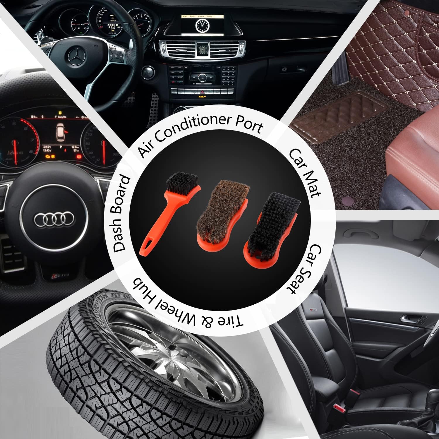 - 【WIDELY APPLICATION】3 different types of the brush, can clean both your car's dash board, wheels, foot mats, seats, air-conditioning port, as well as other leather and textile stuffs in your life. A totally multi-functional brushes kit.