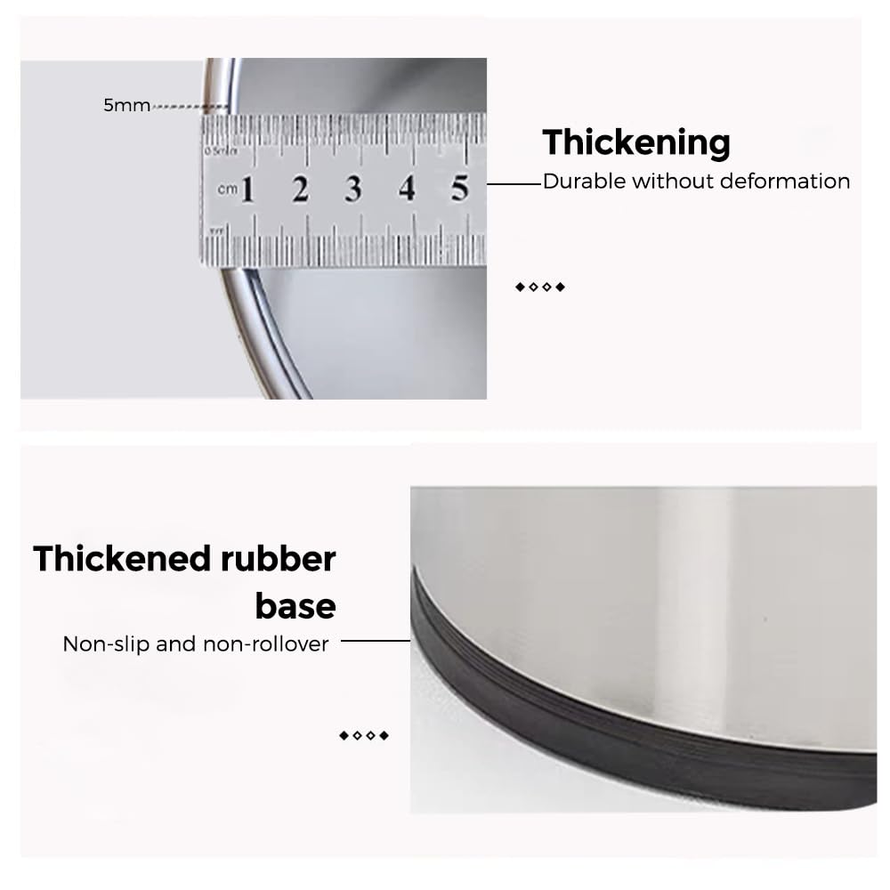 - 【Appearance and material】: This stainless steel trash can is a primary color, very thick, and will last a long time. Stainless steel silver is attractive and suitable for tasteful decoration