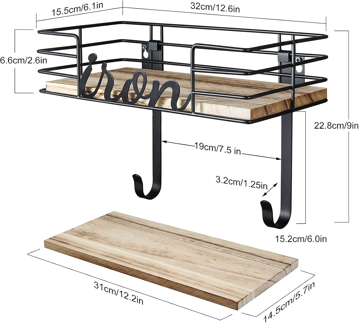 - STURDY AND STYLISH: TJ.MOREE ironing board hanger includes a natural wooden element in its functional basket. While ensuring stored items are secure, it creates a rustic yet modern style.