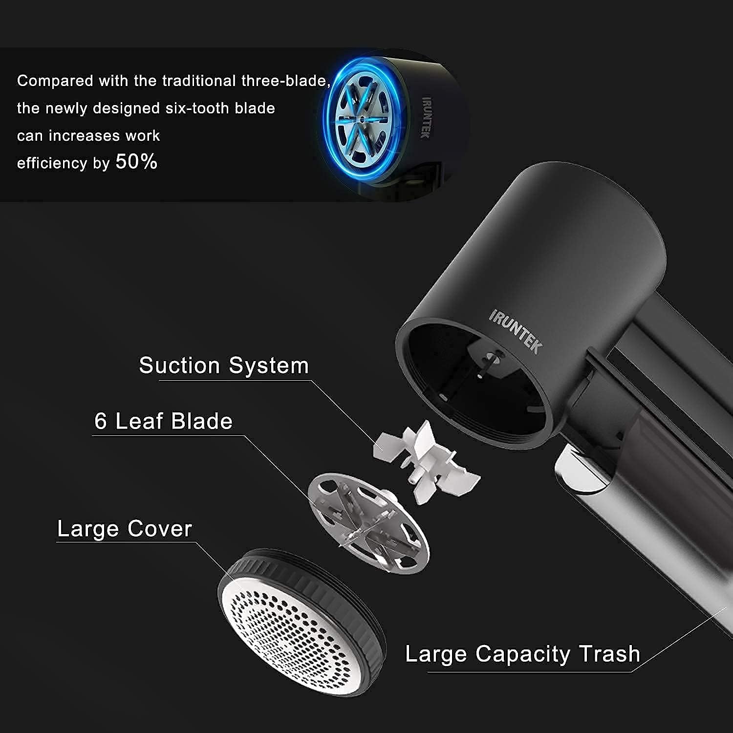 iRUNTEK Rechargeable Fabric Shaver & Lint Remover|3-Speed Lint Shaver with LED Display & Type-C Fast Charging Port|Sweater Shaver with Large Lint Bin|Removes Fuzz & Pills from Clothes Furniture, Black
