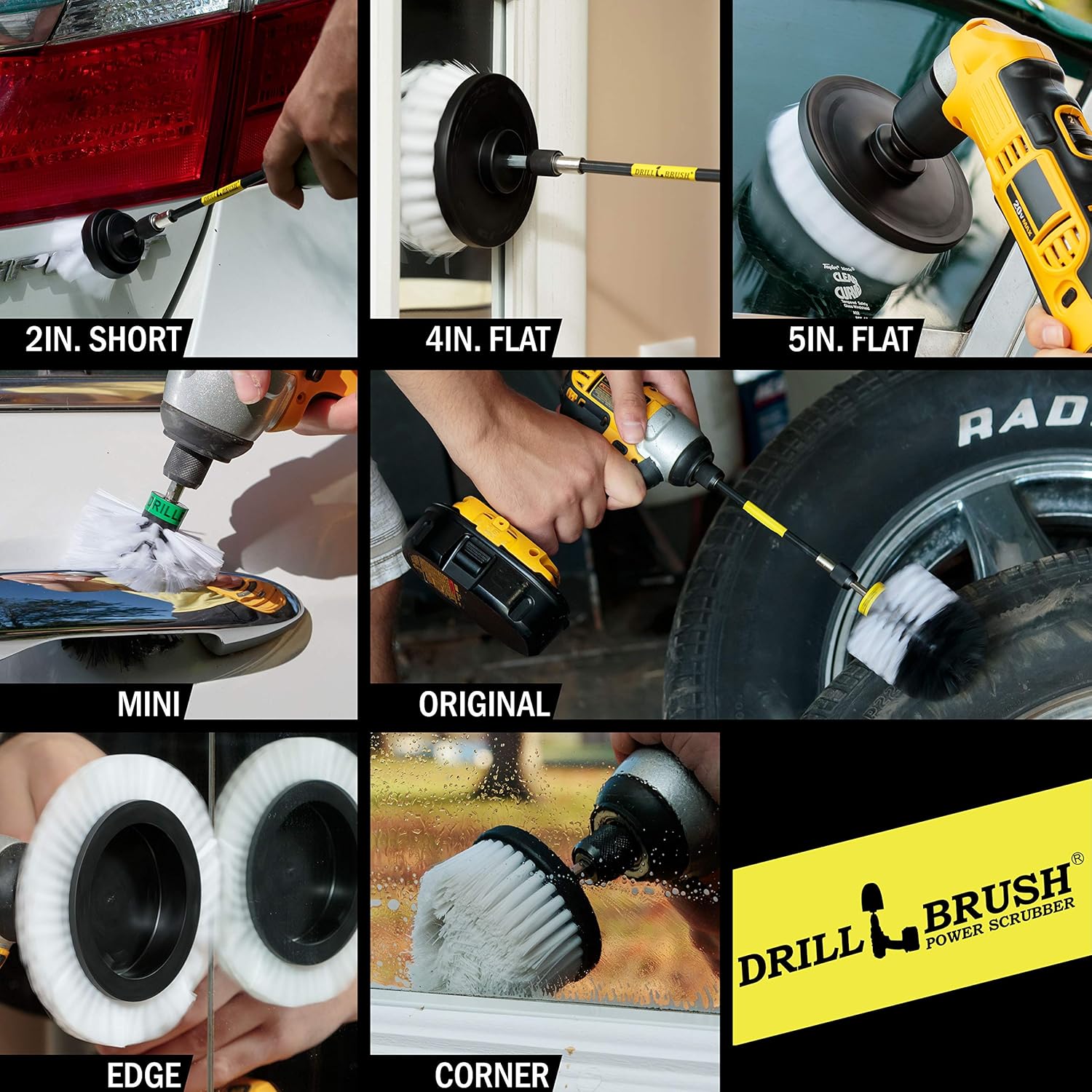 - Drillbrush has assembled the next generation of Ultimate household cleaning tools. Featuring two brand new drill scrub brushes, the edge and cone brush allow you to get into tight corners and crevices with ease. Suitable for Cars, Trucks, Motorcycles, Boats, Watercraft, ATVs, and RVs. Clean, Scrub, and detail with this 21-piece cleaning brushes set. This kit includes our most popular 4- and 5-inch flat scrub brushes. Great for cutting into large flat surface messes with ease.