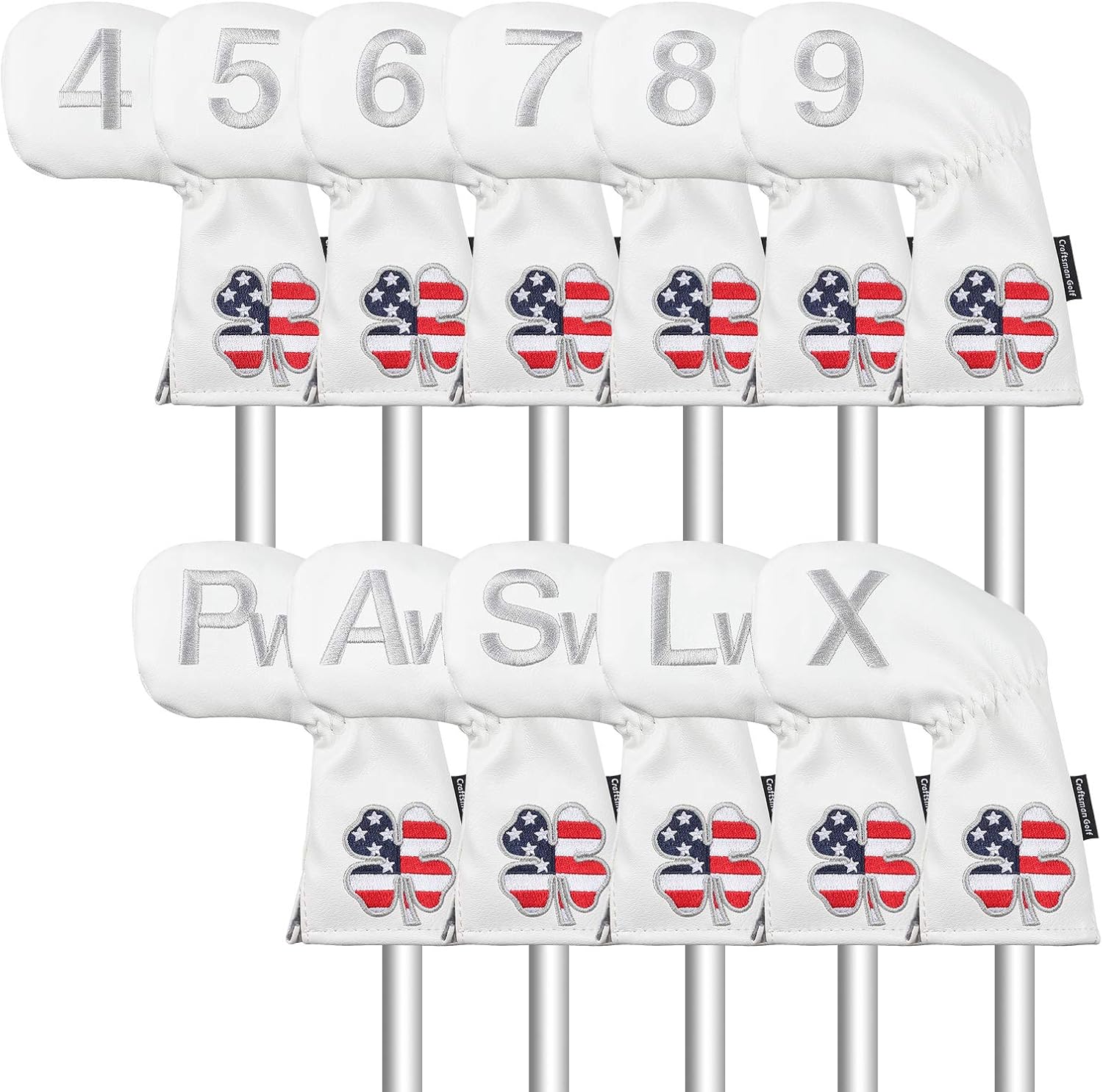 CRAFTSMAN GOLF 11pcs /Set USA US Flag Clover Leather Left Right Black White Green Dark Blue Iron Covers Headcover Also Available for Custom Version with Your Name
