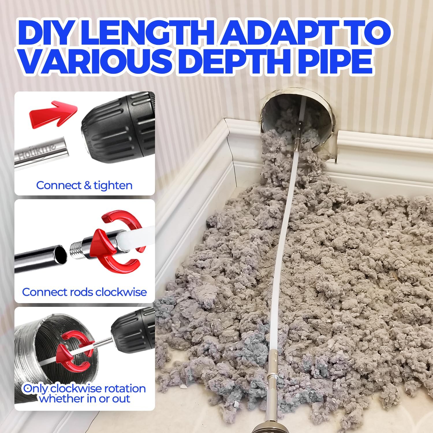 - Improve Dryer Work Efficiency: A drill attachment included. Perfect for improving cloth dryer work performance by using our dryer vent cleaning kit to clean the build up lint and dust in dryer vent, duct and exhaust port.