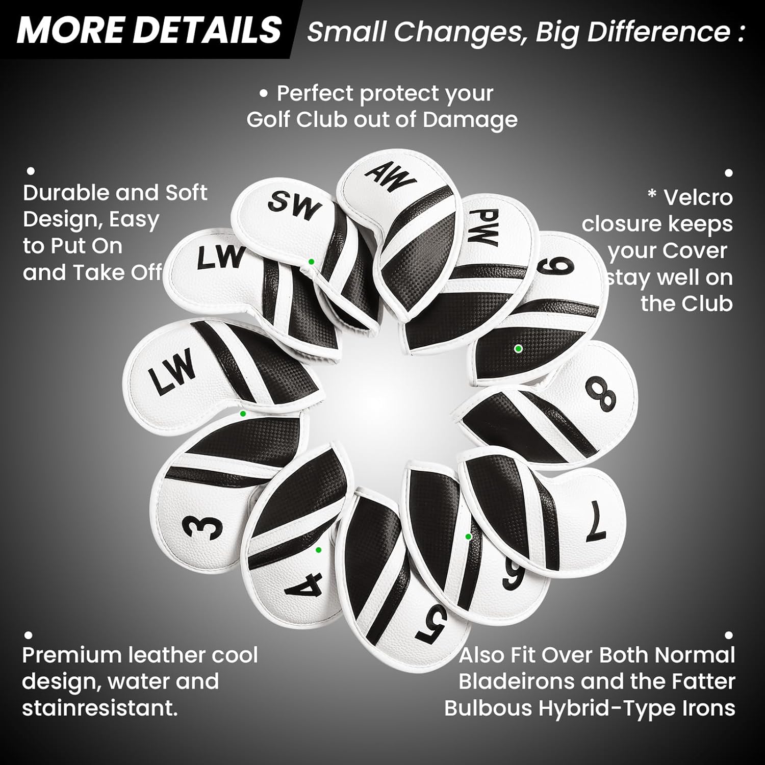 Amy Sport Golf Iron Head Covers Value 12 Pcs Set Thick Synthetic Leather, Protection Weatherproof Club Headcover Fit Universal Main Iron Wedge Golf Clubs for Men Women