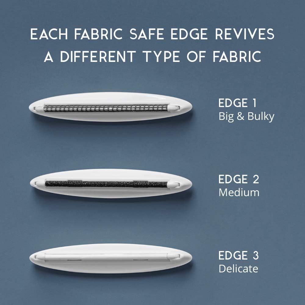 - ERGONOMIC PATENTED DESIGN: The ergonomic handle has a soft moulded grip & the quick release button allows you to easily switch between lint shaver edges. Comfortable to use for bigger depilling jobs such as cushions, sofas, linens, and blankets. Kit includes: Ergonomic handle with integrated lint brush, 3 fabric safe edges, and drawstring travel pouch.