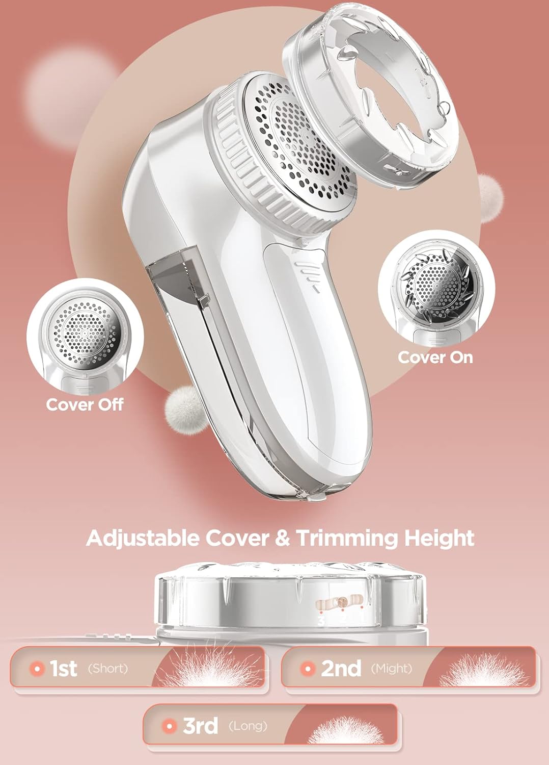 - Zero Risk Sweater Shaver: With three size honeycomb smooth surface and adjustable height, the sweater shaver is ideal for different lint types on clothes and furniture without damaging