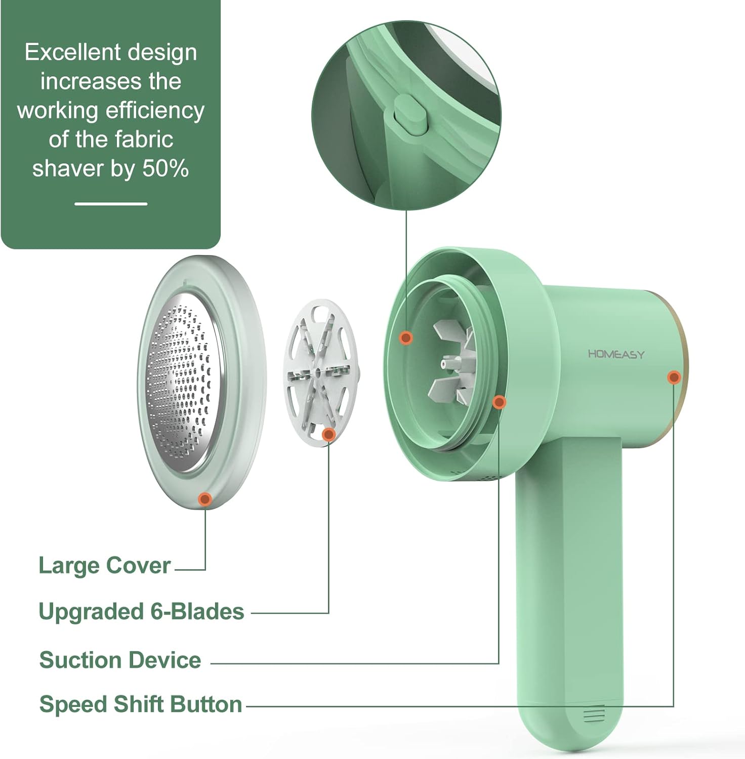 - 2. Efficient Lint Shaver for Furniture - Our sweater lint remover comes with 3 speed settings (I/II/III). Firstly, this fabric lint pill shaver mesh cover has 3 sizes of holes, which can quickly clean up hair balls of different sizes. Secondly, compared to the traditional 3-leaf blades, we equip with 3pcs rust-proof 6-leaf blades, which can greatly improve the working efficiency of the fabric lint remover and meet the needs of all fabric surfaces