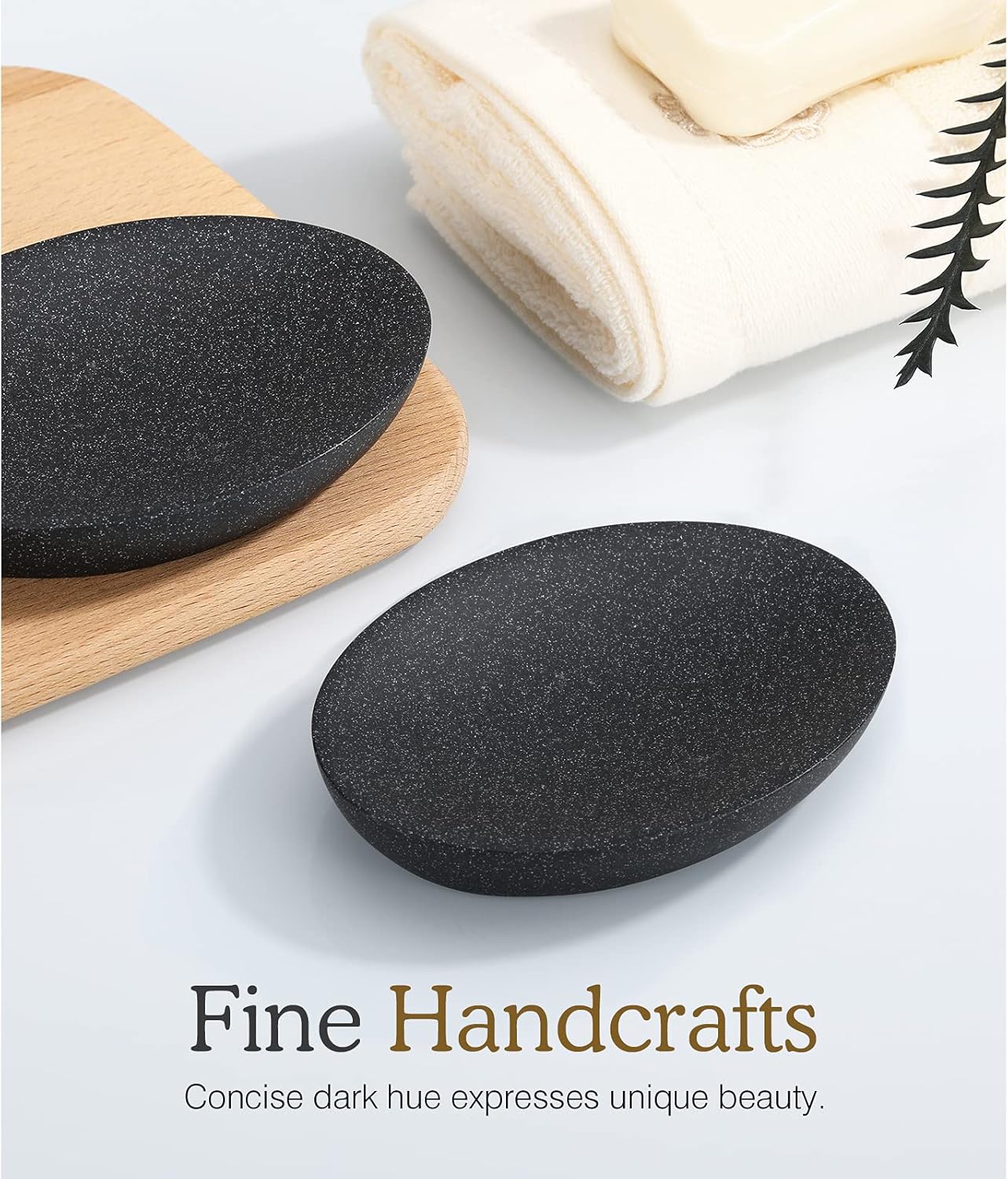 Luxspire Soap Dish, Resin Soap Tray Soap Holder Container Box, Marble Pattern Oval Soap Plate Case, Sponge Dish Scrubbers Tray Holder for Bathroom Vanity Shower Kitchen Sink Counter Top, Gravel Black