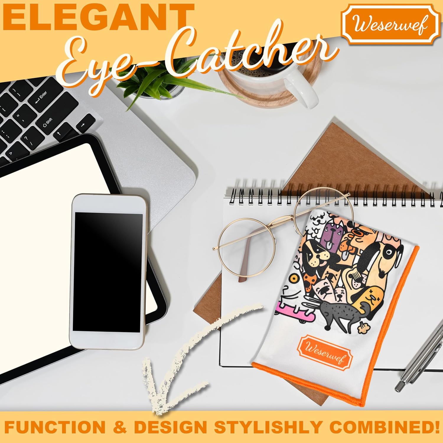 WESERWEF Design Microfiber Glasses Cleaning Cloth – Premium Cleaning Cloth for Eyeglasses, Screens, Tablets, Cameras & Lenses, 12" x 12", Ultra-Soft & Scratch-Free (Funny Dogs)
