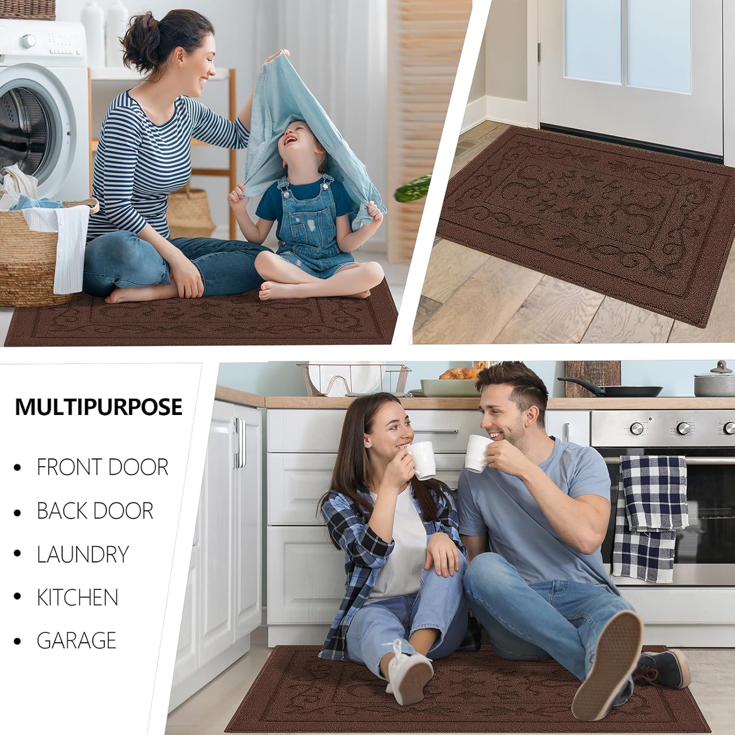 FONEYI Indoor Doormat, Front Back Door Mat 32"x40" Washable, Rubber Backing Non Slip Door Mats, Low-Profile Absorbent Entrance Doormats Inside Floor Mats for Entryway, Resist Dirt Entry Rugs, Coffee