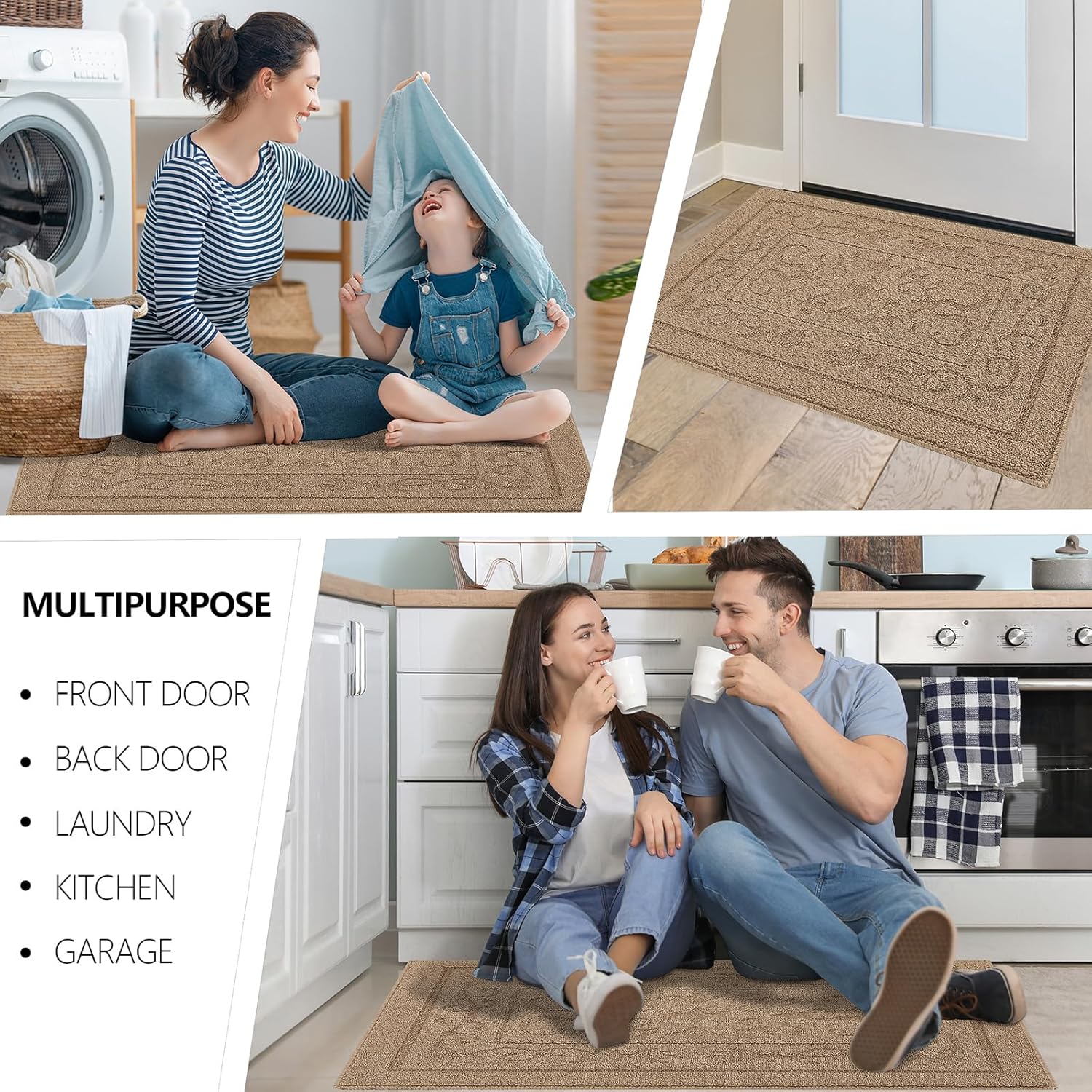 FONEYI Indoor Door Mat 32" x 48", Dirt Trapper Door Mats Non-Slip Entryway Rugs Washable, Absorbent Resist Dirt Welcome Mat, Low Profile Inside Floor Mats for Front Back Door and Entryway, Beige
