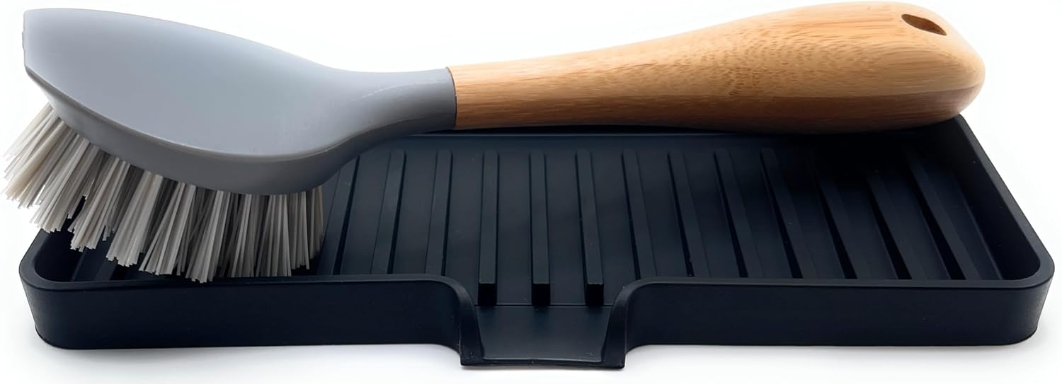 - A More Hygienic Home | A dedicated space for your dishwashing supplies, bathroom sink items, shower niche/shelf items. Tray and drain chute are slightly sloped to help funnel excess water away.Thick, sturdy base stays in place without suction while raised lines promote air flow, so items dry faster and are less prone to developing nasty odors.