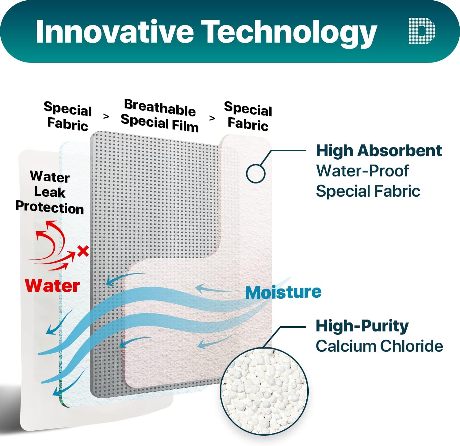 - Using high-purity calcium chloride, it quickly absorbs a large amount of moisture. This makes it possible to dehumidify 4 times more than the box type.