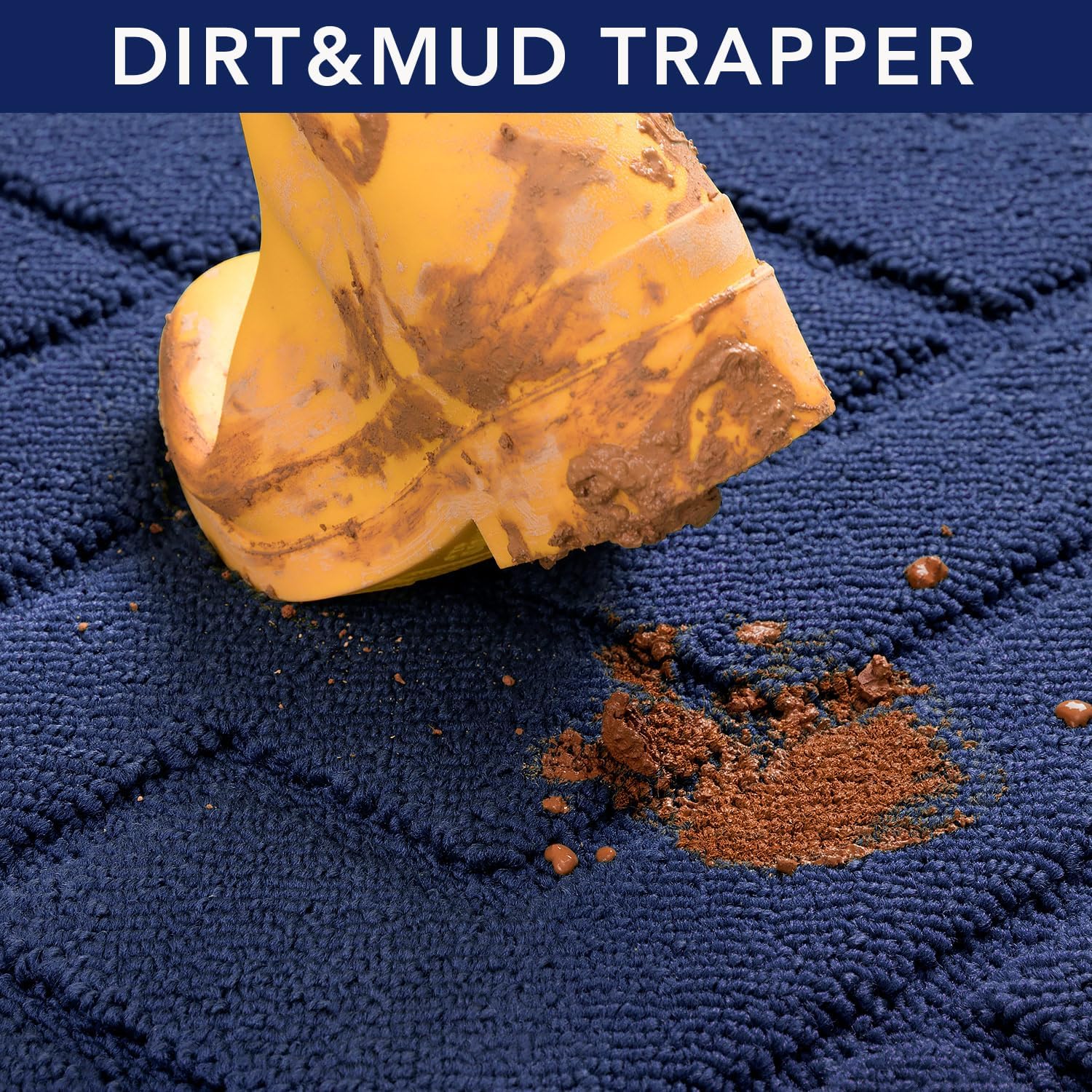 hicorfe Indoor Door Mat,Non Slip Door Mats,32"x48" Front Back Door Mat Rubber Backing,Absorbent Resist Dirt Entrance Inside Floor Mats for Entryway Washable Low-Profile(Navy Blue)