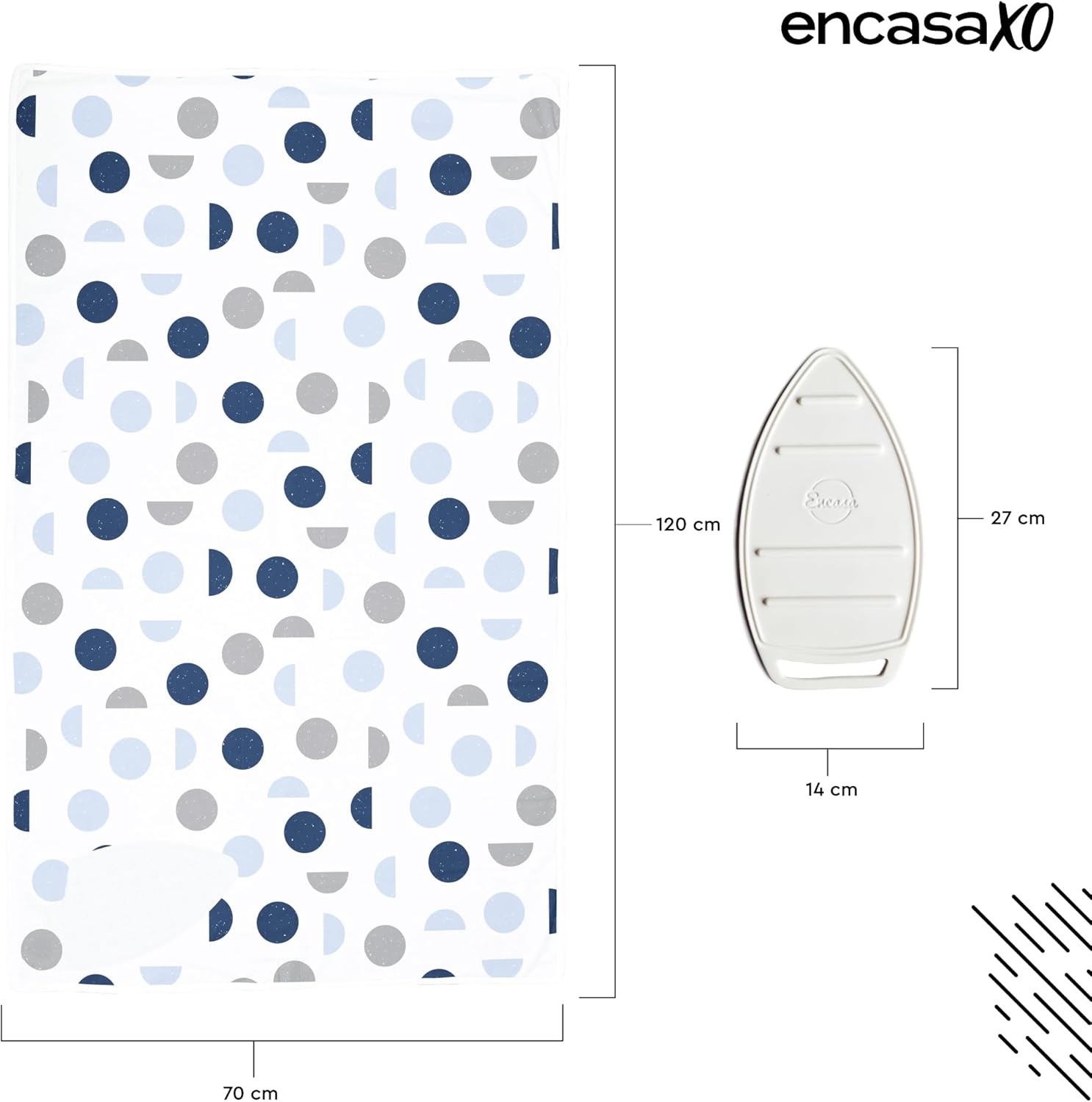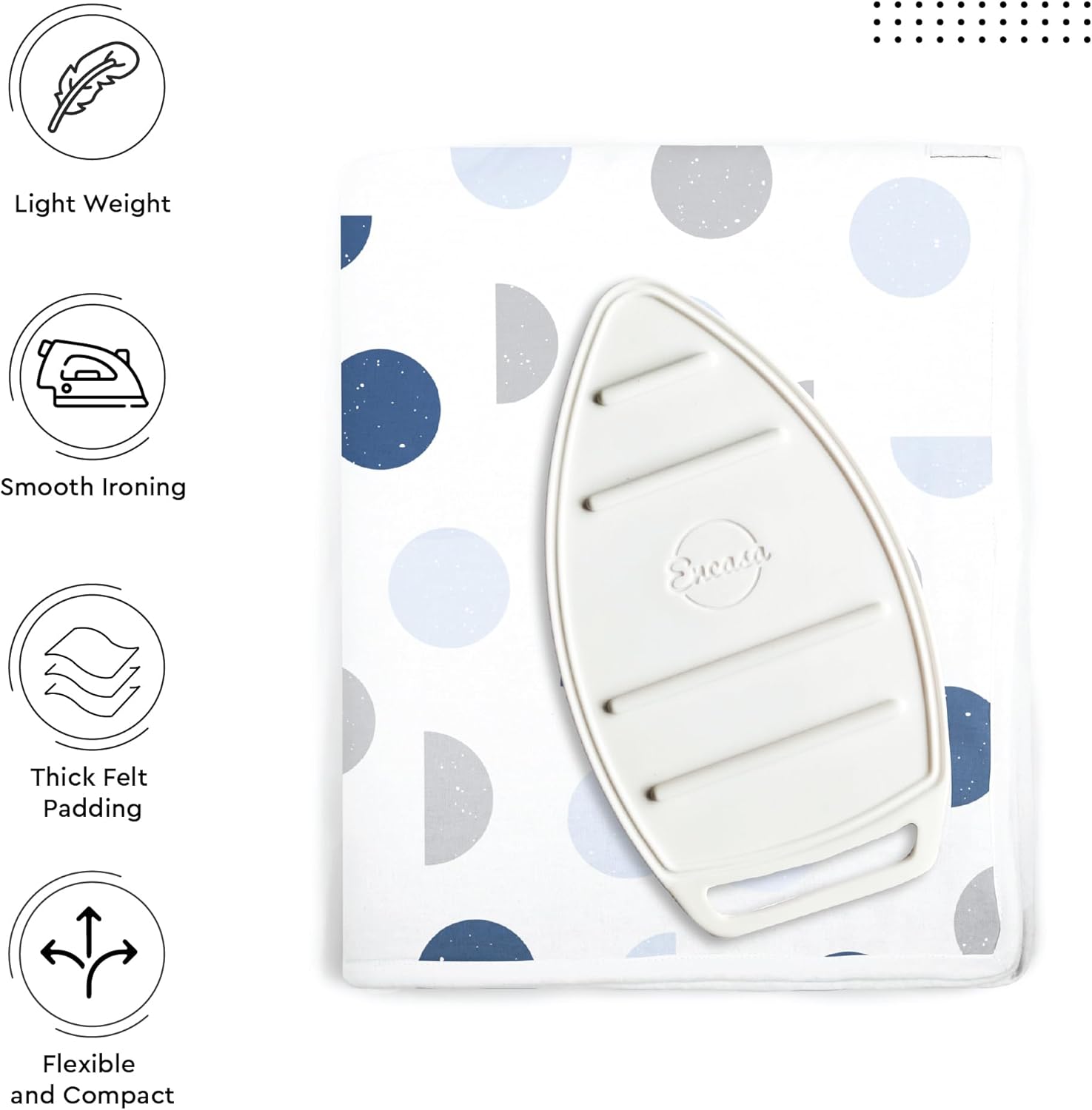 Encasa XO Ironing Mat/Pad (Large 48"x28") with 3mm Padding & Silicone Iron Rest for Steam Pressing on Tabletop or Bed - Heat Resistant, Portable, Quilting & Travel Blanket - Blue Moon