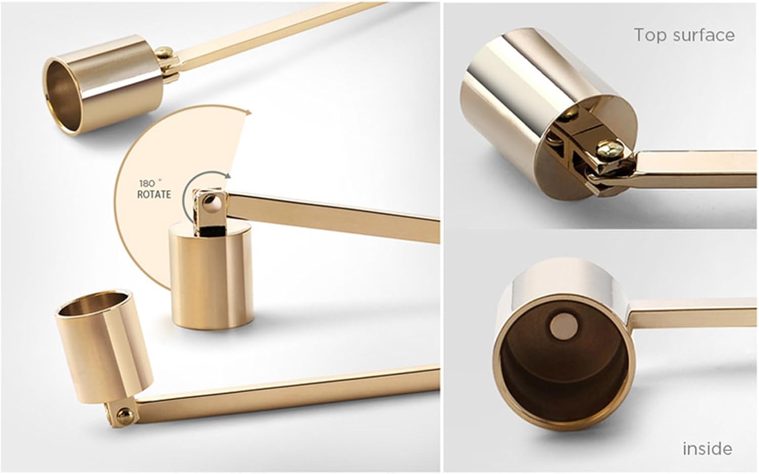 - EASY TO USE : Long handle to extinguish wicks and prevent spray of wax or burns. You can hold the candlesnuffers just above the candle flame to snuff it out, the wide rotating head is easy to reach candles from multiple angle