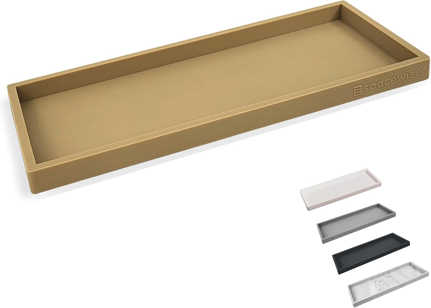 - Use It Anywhere – Choose the endlessly useful and aesthetically pleasing tray that works anywhere. The Spacewiser Original Silicone Tray is perfect as a bathroom tray, vanity tray or kitchen sink tray. Spacewiser Original Silicone Trays are made of premium food grade silicone, without the addition of potentially unsafe thickening or hardening agents. They’re shatterproof, slip resistant, dishwasher safe, heat resistant to 425F, and their texture provides a gentle landing for your items.