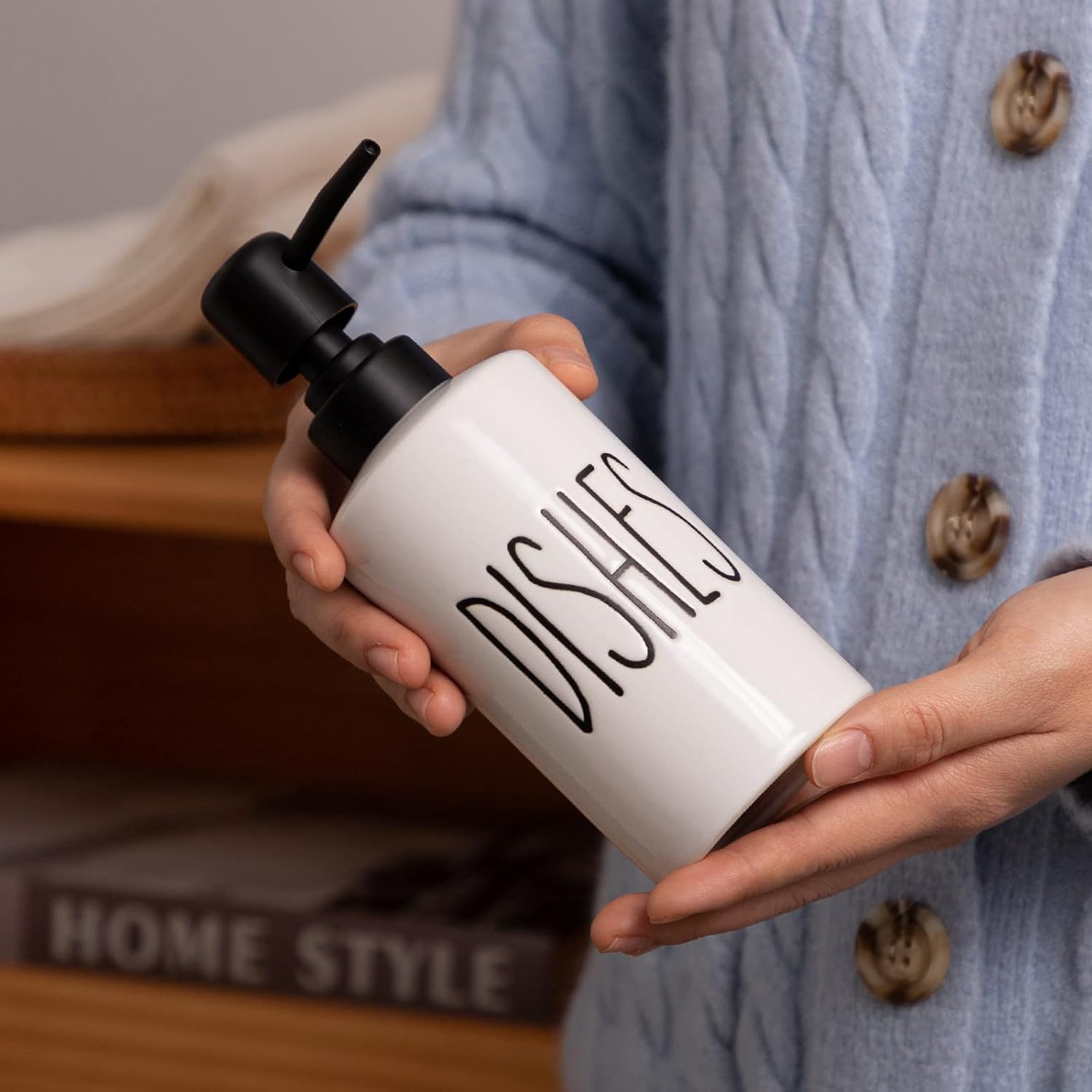 FE Dish Soap Dispenser for Kitchen, 10oz Ceramic Soap Dispenserr for Bathroom with Plastic Pump(Dishes)