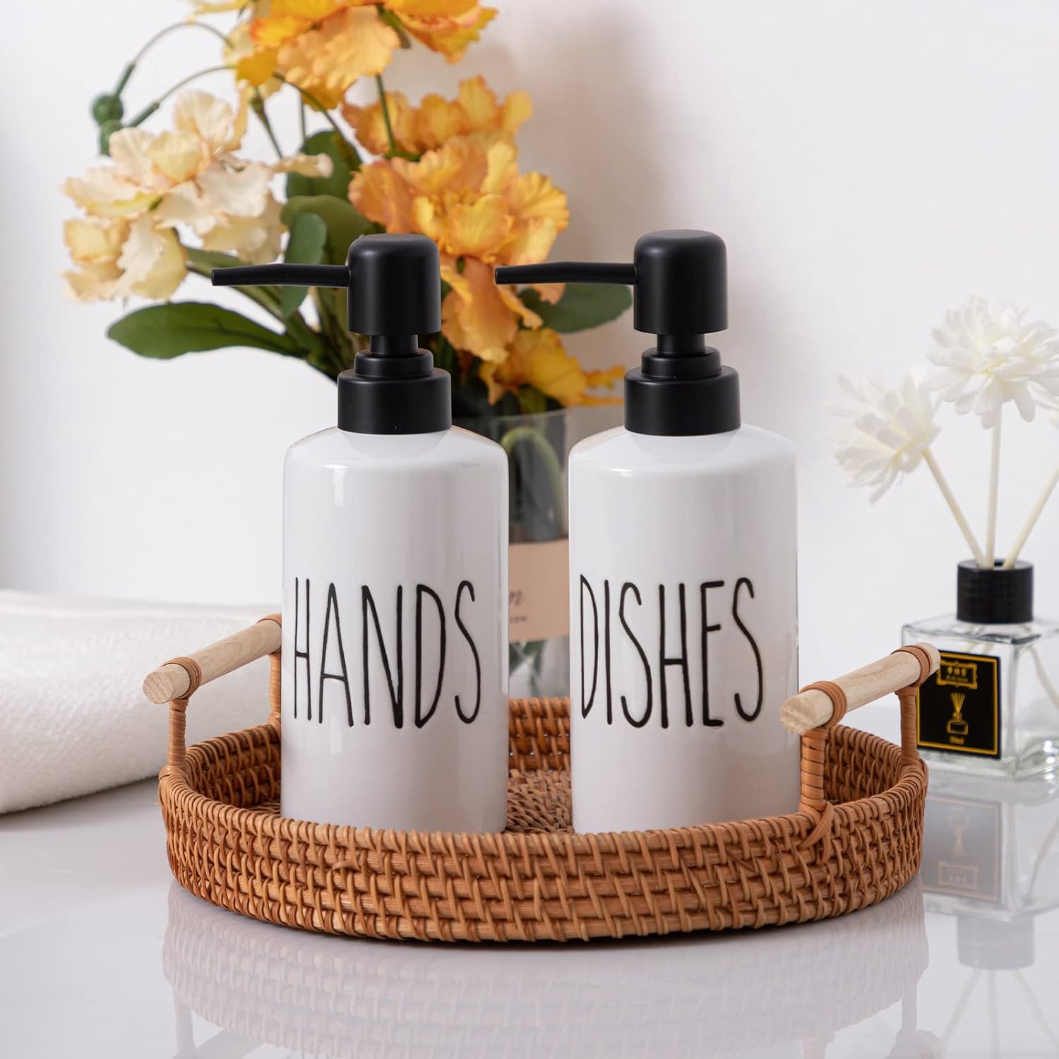 FE Hand Soap Dispenser, 10oz Ceramic Soap Dispenser for Bathroom with Plastic Pump(Hands)