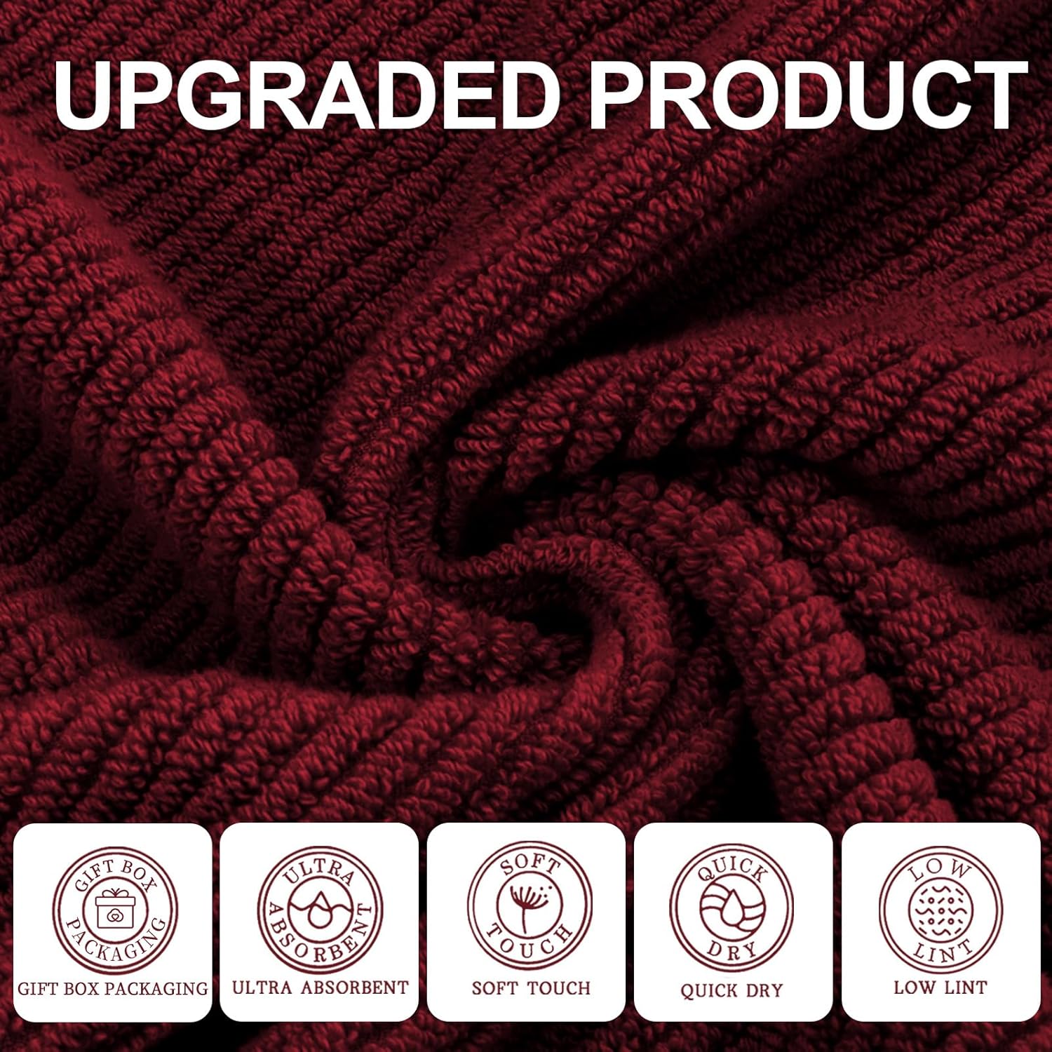 VOOVA & MOVAS Burgundy Towel Set - 100% Cotton | Lightweight | Soft | Quick Dry, 6 Piece Towel Set,2 Large Bath 30"x56", 2 Hand 18"x28", 2 Washcloths 13"x13", Towels Gift Set, Red Towels