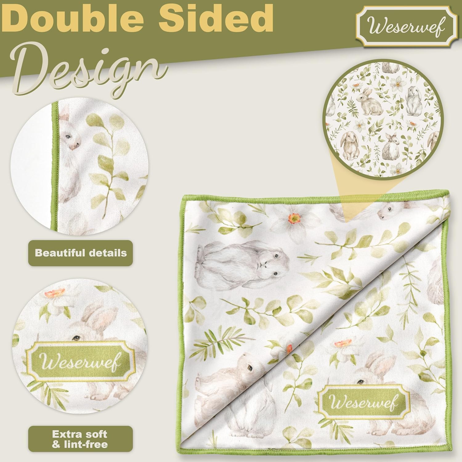WESERWEF Design Microfiber Glasses Cleaning Cloth – Premium Cleaning Cloth for Eyeglasses, Screens, Tablets, Cameras & Lenses, 12" x 12", Ultra-Soft & Scratch-Free (Rabbits)