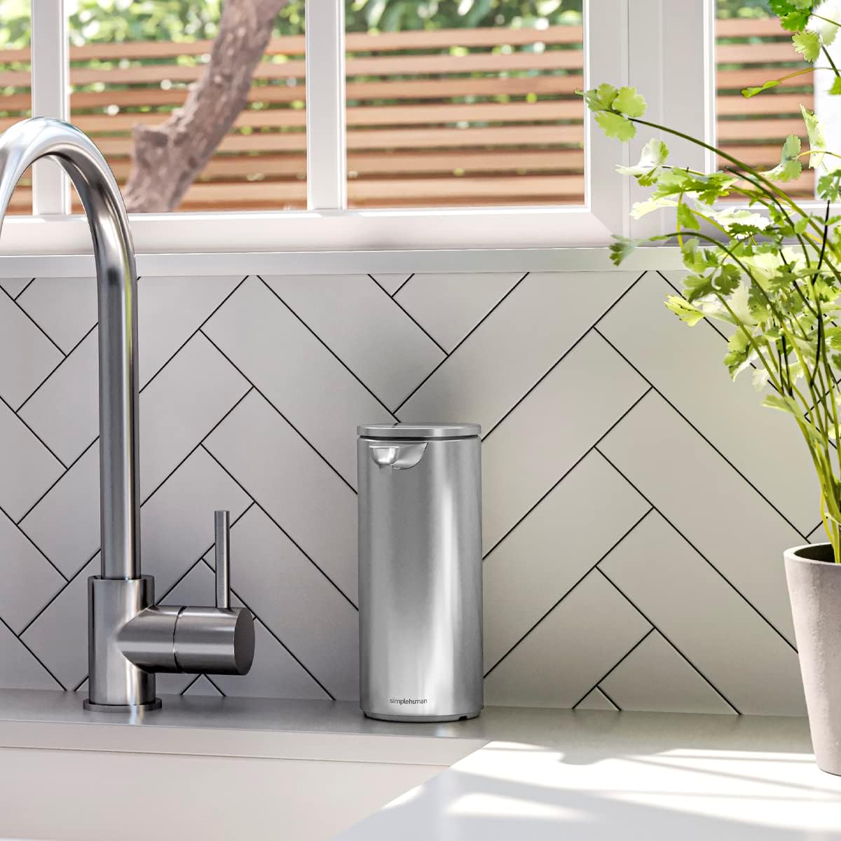 simplehuman 14 oz. Touch-Free Rechargeable Sensor Liquid Soap Pump Dispenser, Brushed Stainless Steel