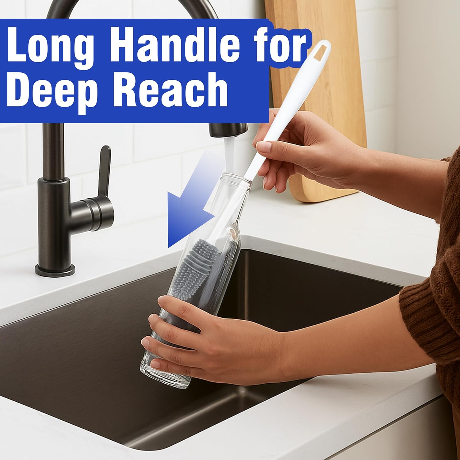 - COMFORTABLE LONG HANDLE - The handle is thin and long enough to reach the bottoms of bottles. The 10 inches lengthy ergonomic PP handle is perfect for various tall bottles. There is a hang loop in the end of handle for easy storage.