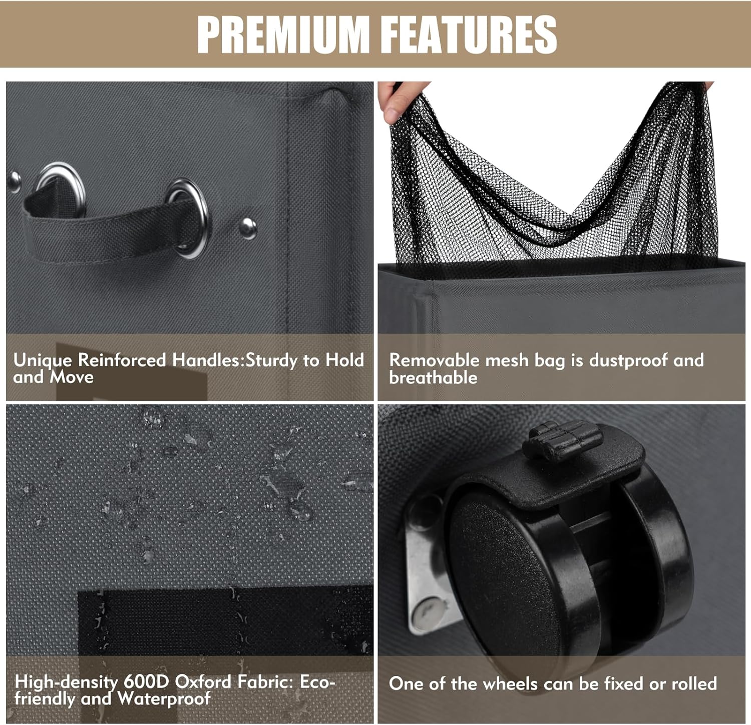 - 4 WHEELS - The laundry hamper on wheels is easy to move, brake on one of the wheels ensure safety for home use