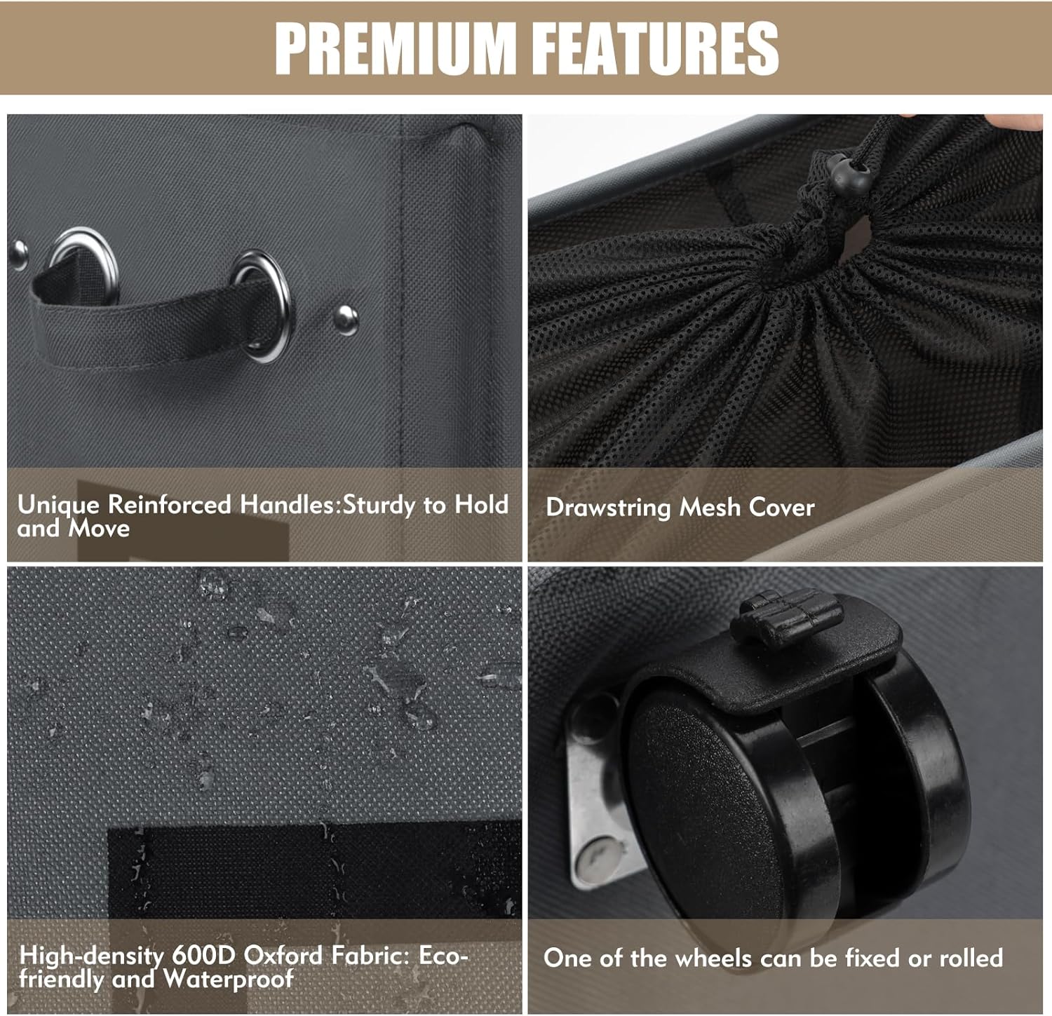 - 4 WHEELS - The laundry hamper on wheels is easy to move, brake on one of the wheels ensure safety for home use