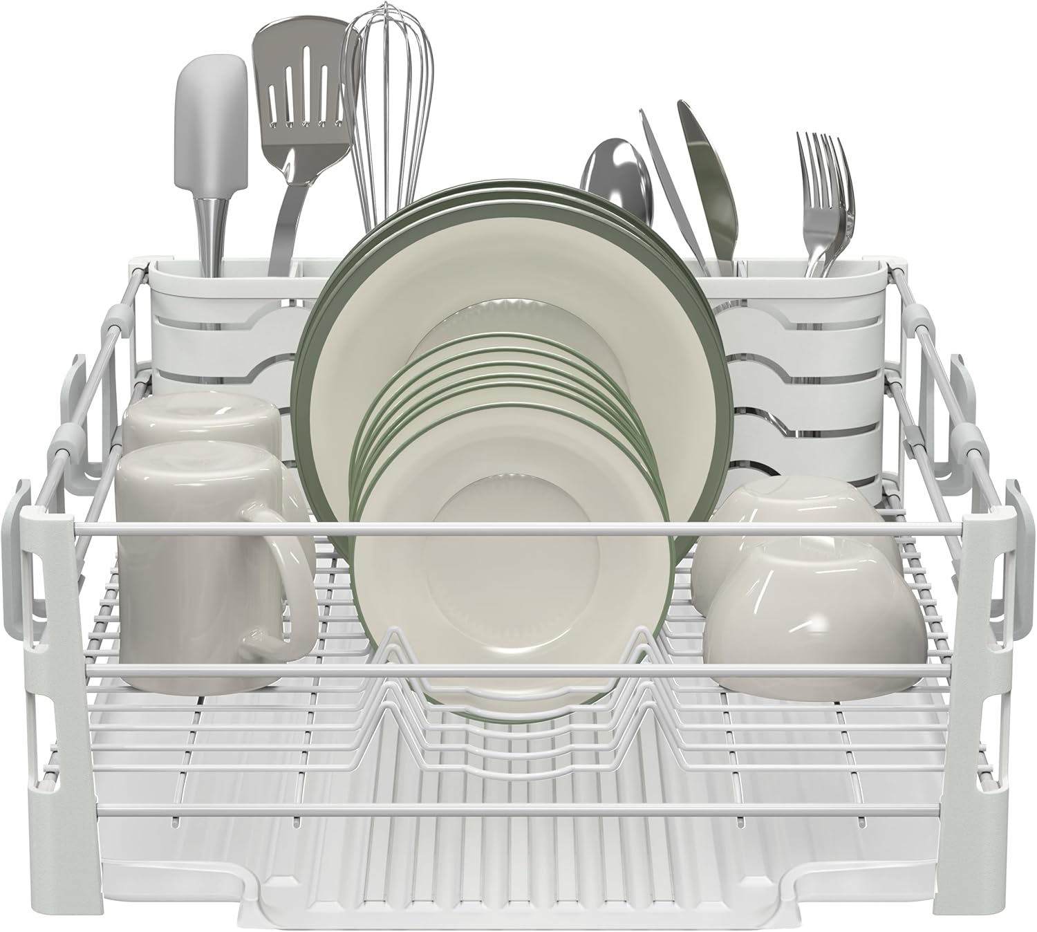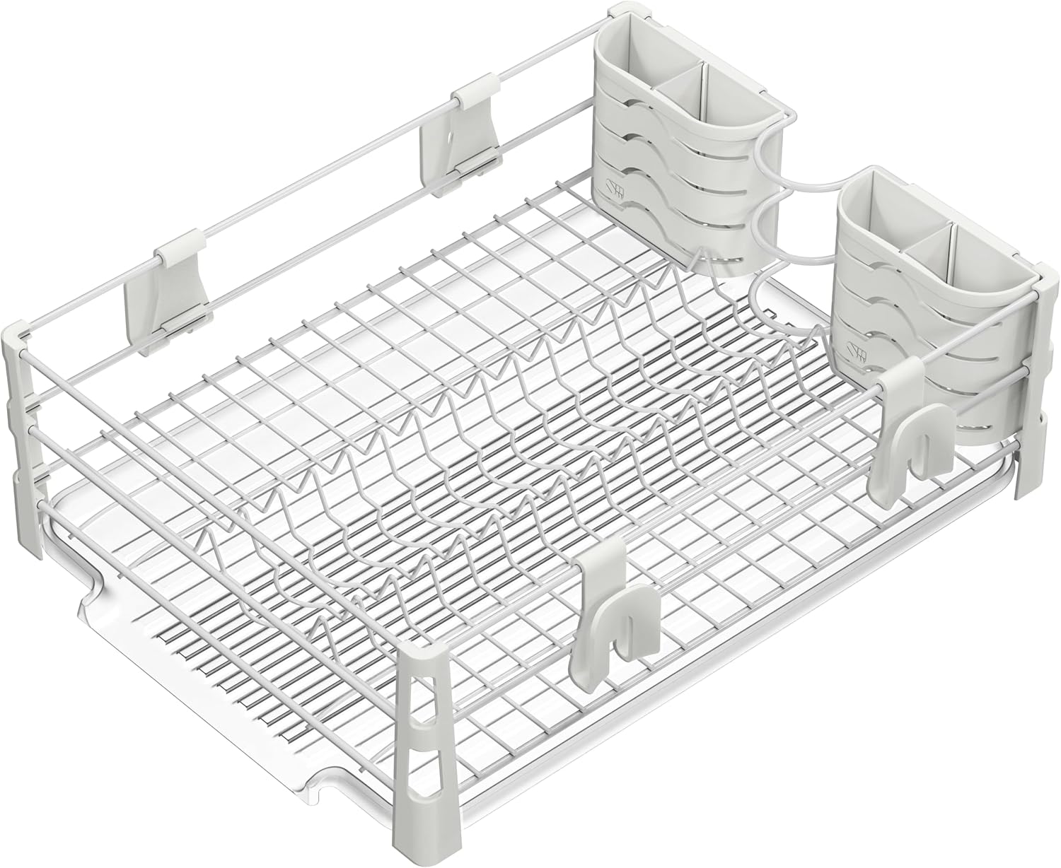 - Multifunctional dish rack set features Included accessories: including 2 Utensil Holders, 4 Mug Hooks, and a Drainers, which can efficiently help you save space.