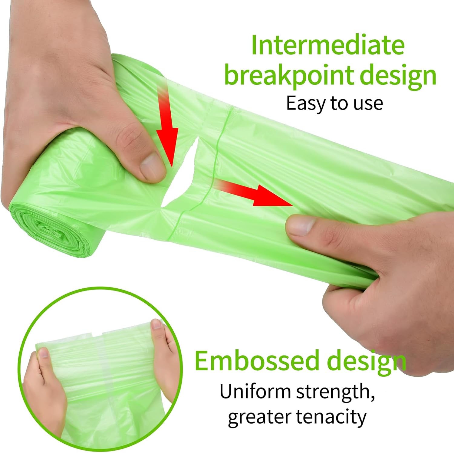 - Upgraded High Density Material - New thickened design with 1.2mil gauge for holing up 8kg trash without leakage or rips, significantly improved pull-up strength.