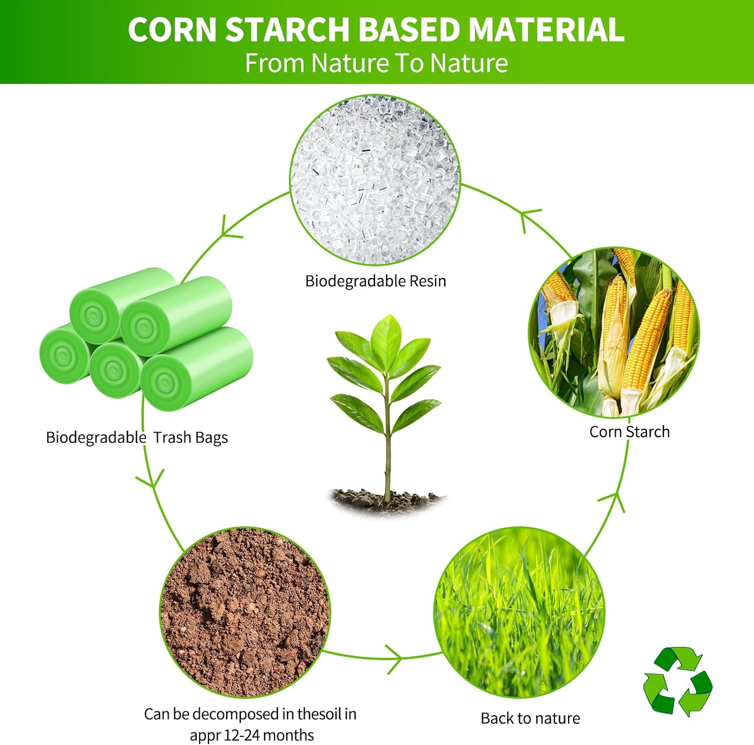 - Biodegradable Trash Bags - No smell, non-toxic and eco-friendly (break down quickly in industrial compost facilities)