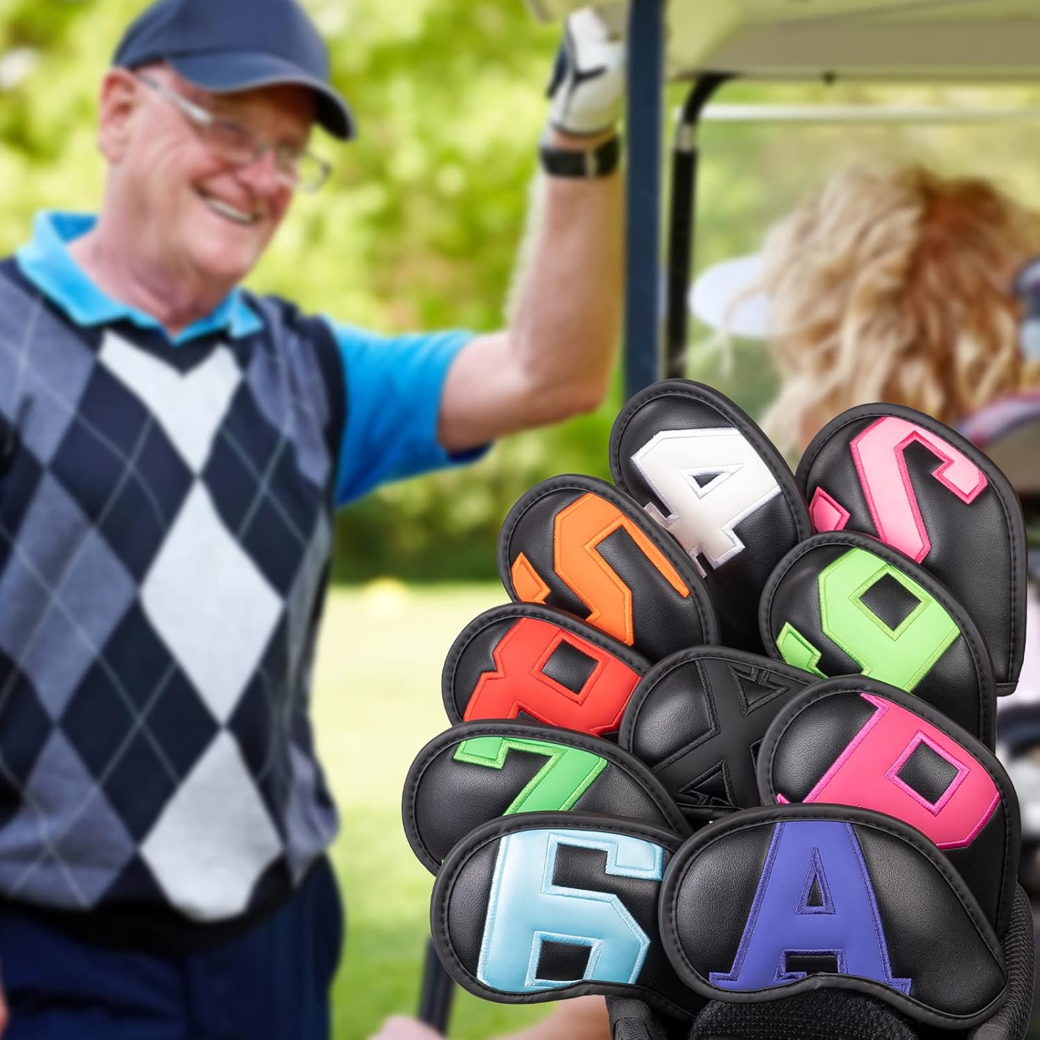- Package Included : 1 set 10pcs ( 4,5,6,7,8,9,P,A,S,X ) black iron headcovers with large colorful No.