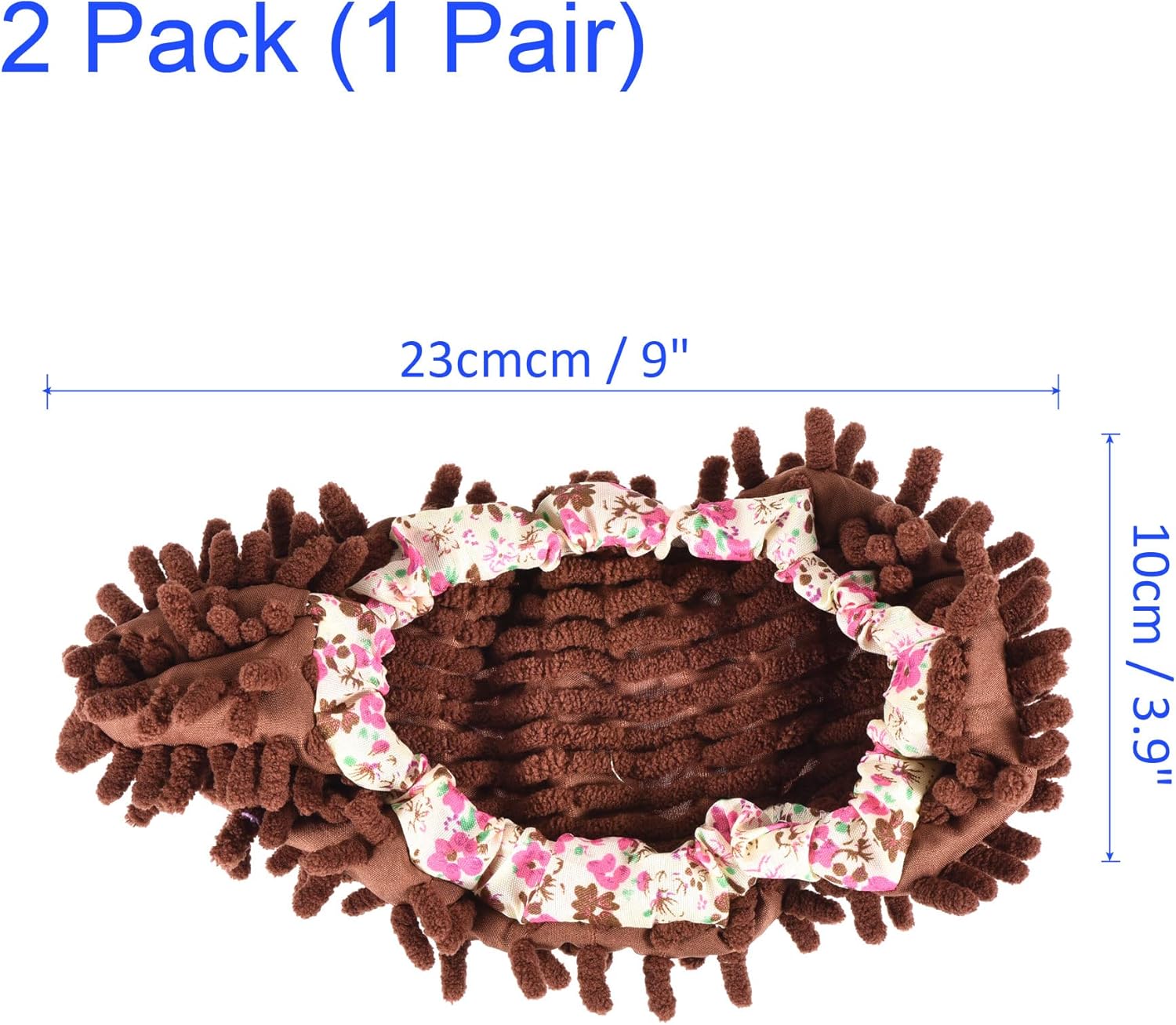 1 Pair Washable Cleaning Shoes Cover - Floor Cleaning Dust, Chenille Microfiber Duster Mop Slippers, Apply to House Office Room (Brown)